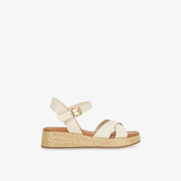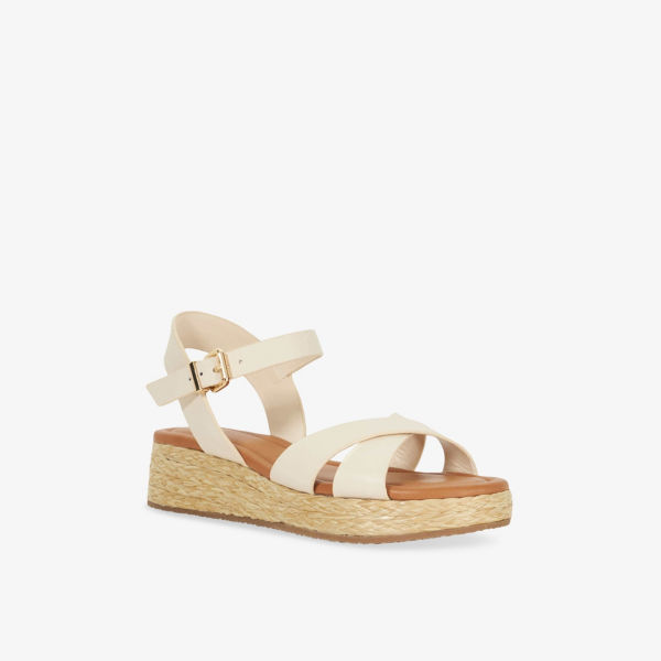 Сандалии на платформе Dune Littleton из кожи и рафии, экрю