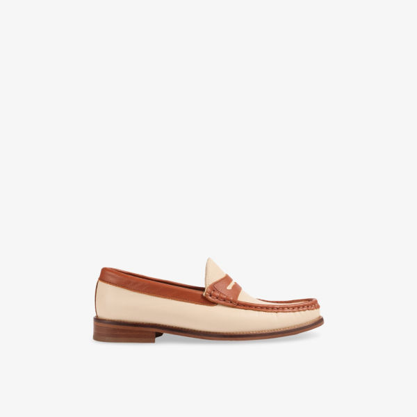 Закрытый миндалевидный носок, отделка прорезями для пенни, ручная строчка, дизайн с цветными блоками