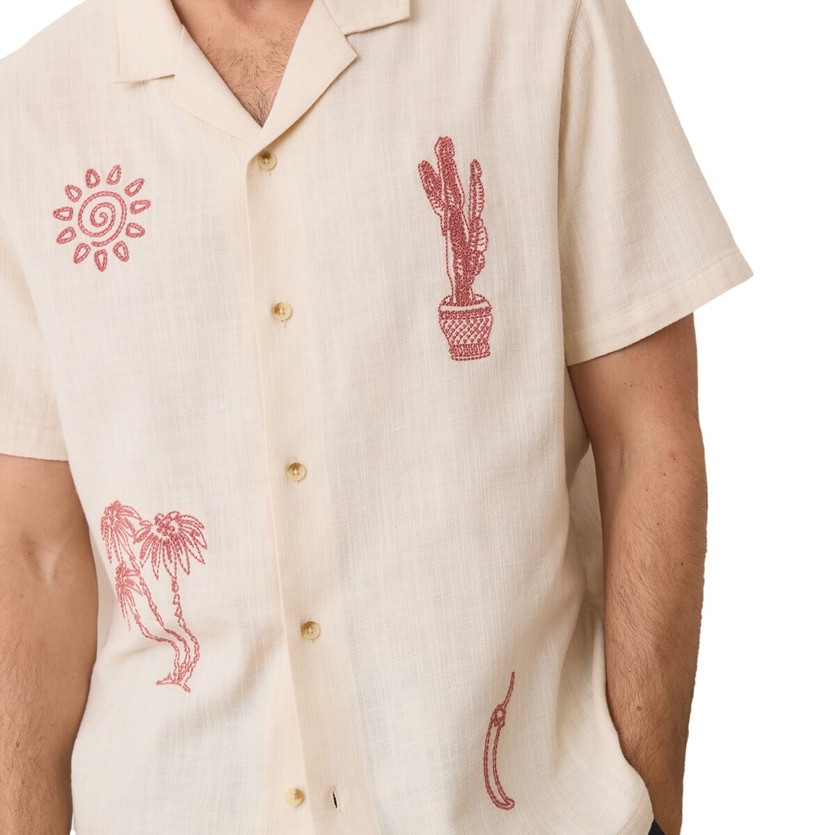Отдыхаем ли мы на продуваемой ветром веранде или отправляемся ужинать у воды, рубашка Embroidered Resort Shirt от Marine Layer дарит беззаботную прибрежную атмосферу. Благодаря изящной вышивке и свободному воротнику она придаёт любому образу нотку вневременного курортного стиля, даже если мы просто мечтаем о поездке на остров.