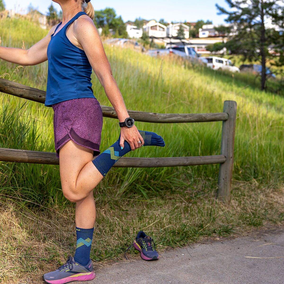 «Эти носки — настоящая находка для бега и пеших прогулок. Отдельные манжеты для пальцев ног предотвращают появление мозолей, а сетчатый верх сохраняет ноги в прохладе во время длительных тренировок. Лёгкие и прочные, они — мои любимые носки для любой пробежки».