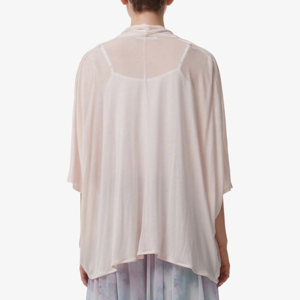 Свободный крой, V-образный вырез, короткие рукава, отделка в виде запаха, трикотажная текстура