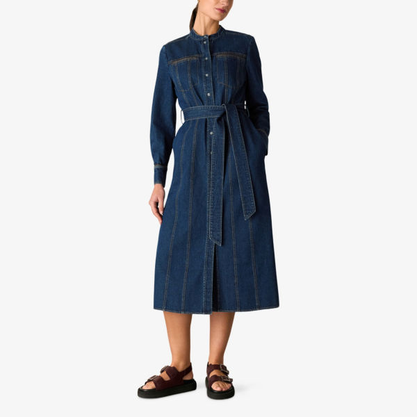 Платье джинсовое Whistles Myra с поясом на завязках, синий