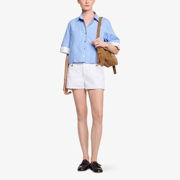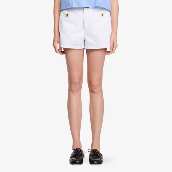 Шорты джинсовые Sandro с фирменной нашивкой, белый