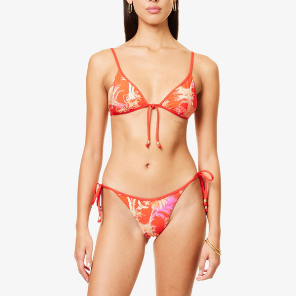 Треугольные чашечки, регулируемые завязки, подкладка, графический принт по всей поверхности