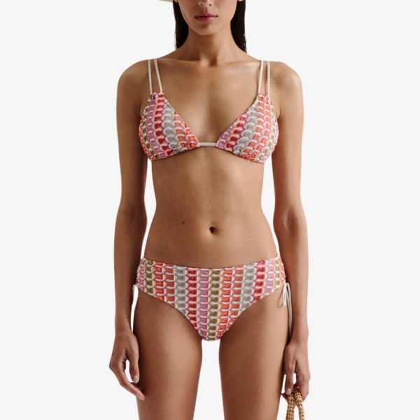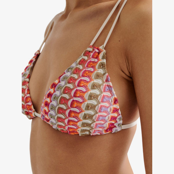 Треугольные чашечки, двойные бретели, регулируемые бретели с фурнитурой из бусин, шевронный узор