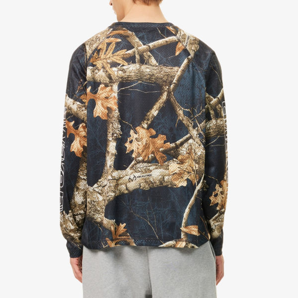 Свободный крой, круглый вырез горловины, длинные рукава реглан, фирменный принт спереди и на рукавах, графический принт по всей поверхности, сетчатая текстура по всей поверхности