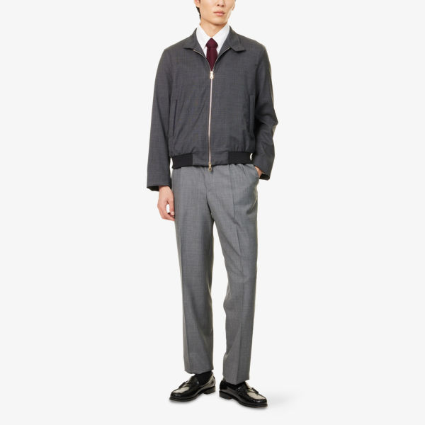 Классический крой, воротник-стойка, длинные рукава, два накладных кармана спереди, манжеты на кнопках, серебристая фурнитура, ребристая отделка