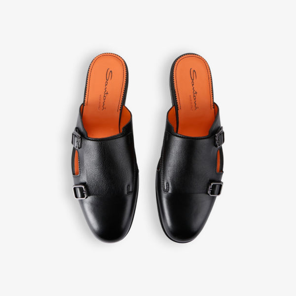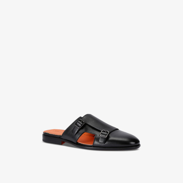 Туфли-мюли кожаные Santoni Monk с двойной пряжкой, черный