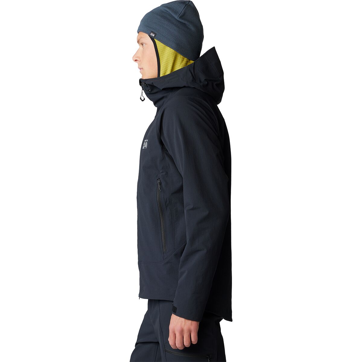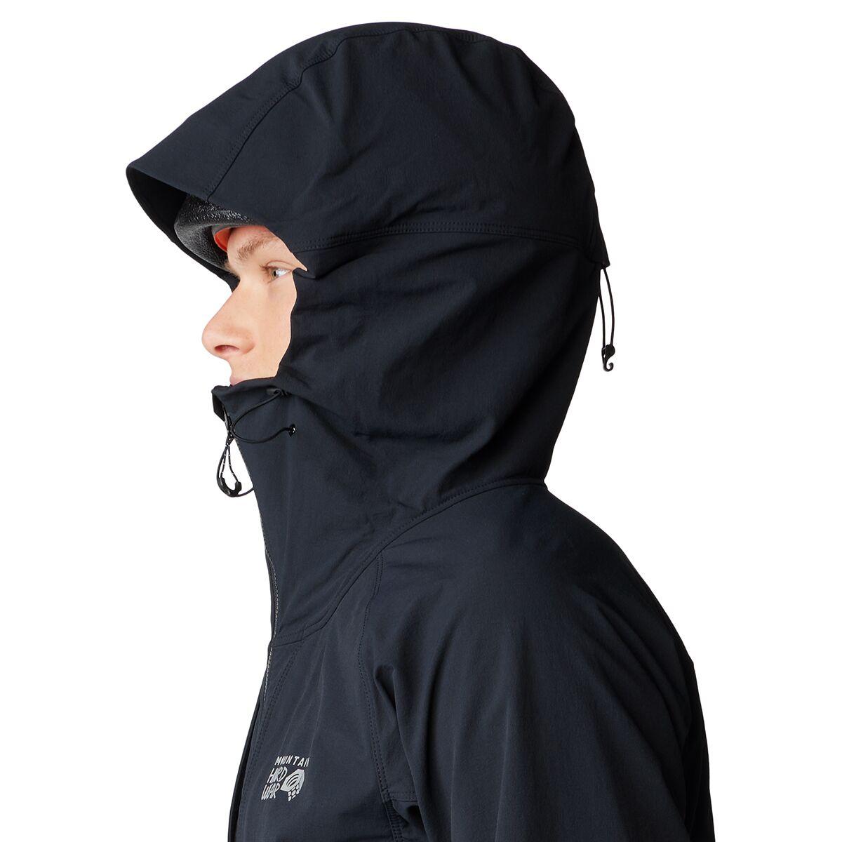 Бренд: Mountain Hardwear Цвет: черный Материал: Chockstone Double Weave Soft Shell (92% нейлон, 8% эластан) Швы: не проклеены Посадка: облегающая Длина: бедра Капюшон: несъемный, 3-панельный, регулировка шнурком в 3 направлениях, совместим со шлемом Карманы: [внешние] 2 для рук на молнии, совместимые с подвесной системой, 2 нагрудных на молнии, [внутренние] 2 втачных сетчатых кармана Вентиляция: двухсторонняя молния спереди Отверстия для больших пальцев: нет Способ деятельности: скалолазание, альпинизм, пеший туризм