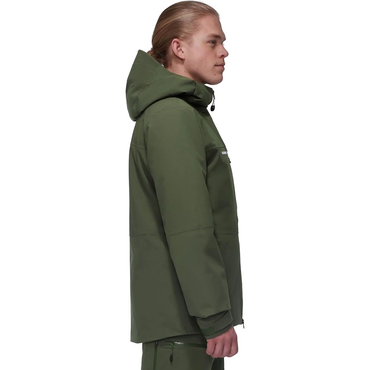 Бренд: Mammut Цвет: цвет dark marsh Ответственный сбор: переработанный/повторно используемый Материал: [мембрана/ламинат] Mammut DRY Tour 2 л, [лицевая ткань] 75D x 75D 100% переработанный полиэстер, обработка DWR без PFC, [подкладка] 100% переработанный полиэстер Утеплитель: переработанный Ajungilak OTI Element (переработанный полиэстер) Водонепроницаемость: 20 000 мм Воздухопроницаемость: 20 000 г/м² Посадка: стандартная Длина: бедра, утягиваемый спущенный край Капюшон: несъемный, совместим со шлемом, регулируемый в 1 точке Карманы: [внешние] 2 на молнии для рук, 2 на груди на молнии, 1 на молнии на рукаве, [внутренние] 1 сетчатый Вентиляция: подмышками Молнии Защитная юбка: съемная, эластичная Отверстия для больших пальцев: нарукавники Заявленный вес: 2 фунта 5 унций Деятельность: горные лыжи, сноуборд
