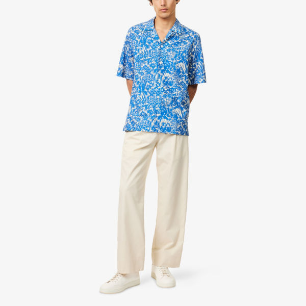 Отложной воротник, короткие рукава, боковые разрезы, графический принт по всей поверхности, прямой подол