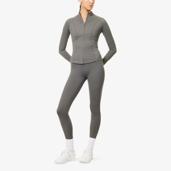 Приталенный крой, высокий ворот, длинные рукава, прорези для больших пальцев по низу рукавов, потайной карман на молнии сзади, вышитый логотип сзади, растягивается в четырех направлениях