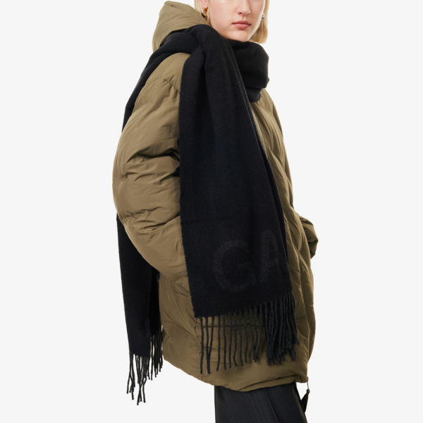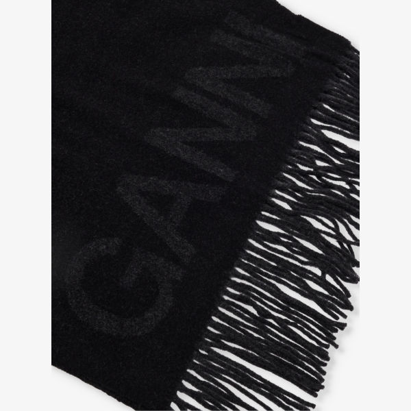 Шарф Ganni с бахромой и логотипом, черный