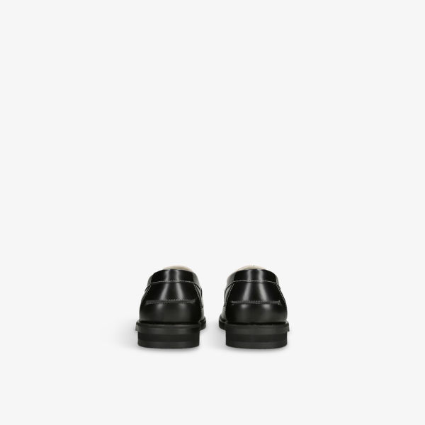 Закрытый миндалевидный носок, принт Casa Duke, монохромный дизайн, контрастная строчка, отделка в виде пенни спереди, наборный каблук