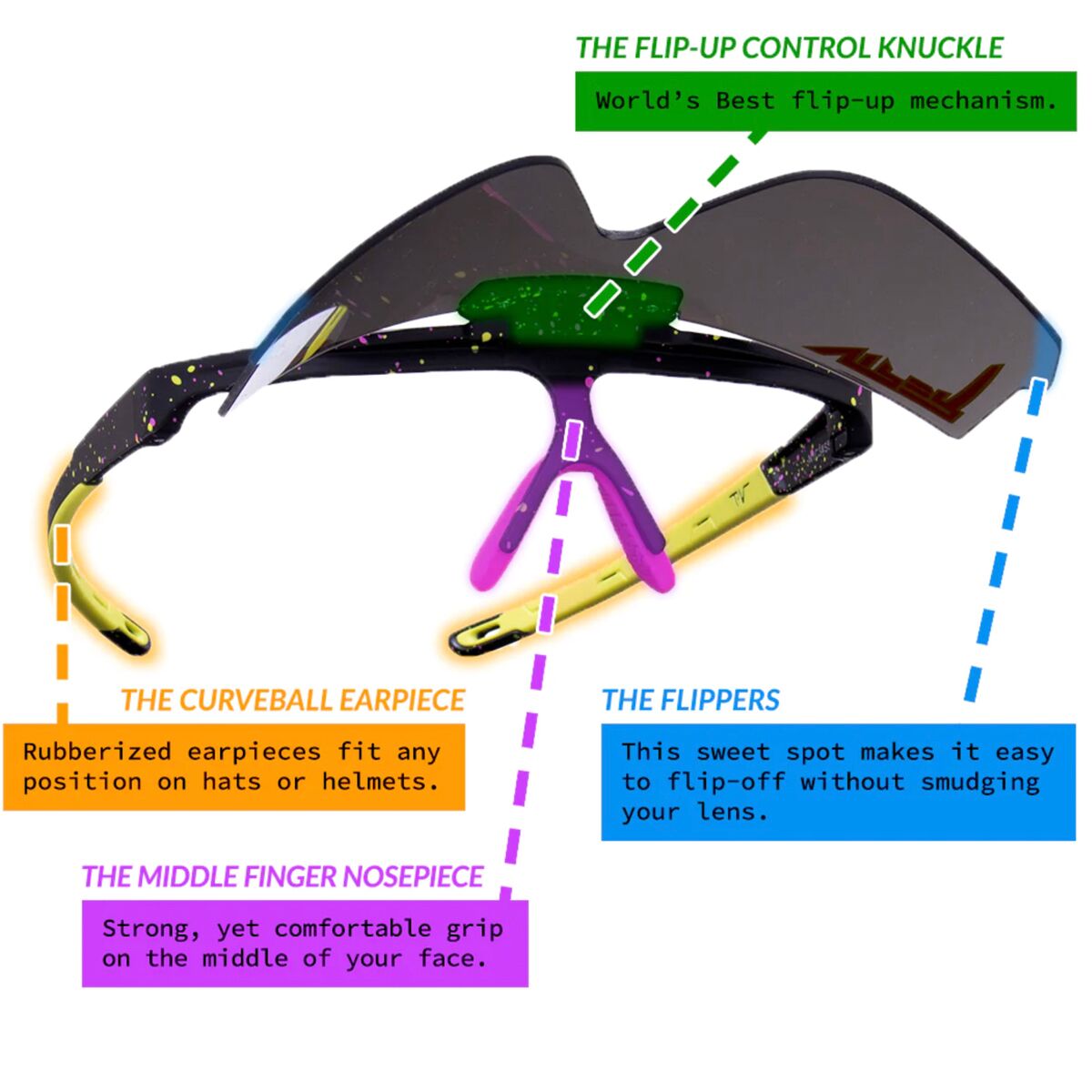 Проверяем ли мы свои результаты после того, как обогнали всех остальных бегунов на поле, или облака затмевают солнце, пока мы играем в жарком углу местной софтбольной лиги, солнцезащитные очки Pit Viper The Flip-Offs нас защитят. Эти соблазнительные солнцезащитные очки имеют классическую облегающую форму Pit Viper, а также возможность подняться, когда не используются. Оправы созданы, чтобы выдерживать удары, с нескользящими прорезиненными накладками на носу и висках, чтобы мы могли сделать прыжок, чтобы закончить иннинг, прежде чем бежать к блиндажу с поднятыми линзами, наблюдая за соперниками.