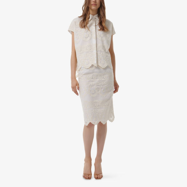 Юбка Leem Pencil с кружевной отделкой, белый