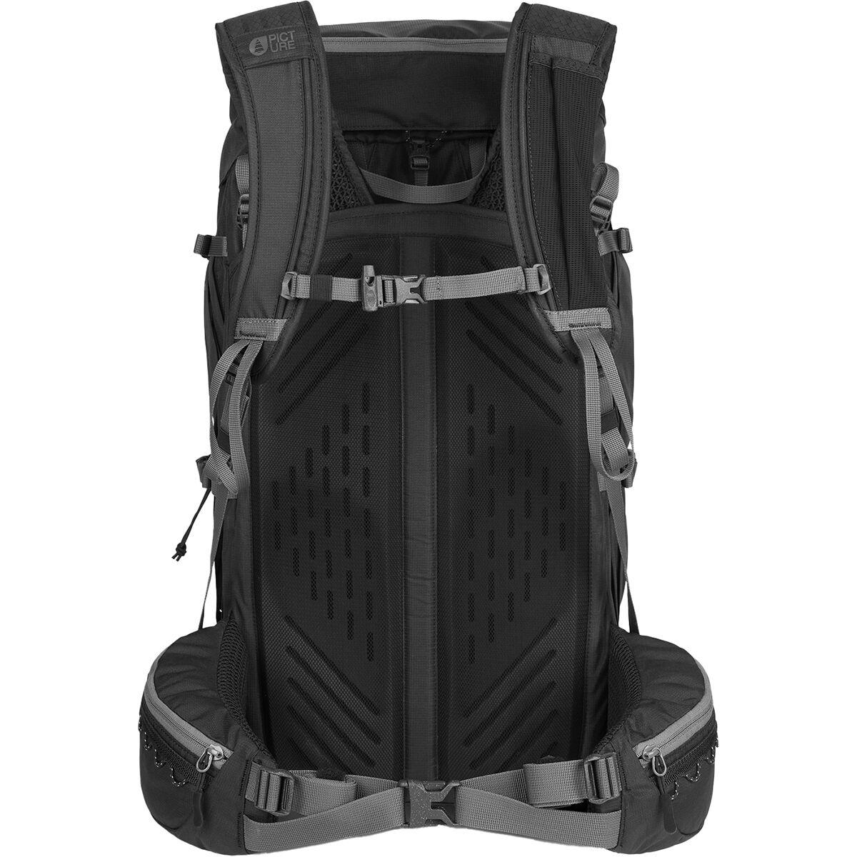 Бренд: Picture Organic Цвет: черный Ответственный сбор: переработанный/повторно используемый Материал: 150D 100% переработанный полиэстер рипстоп Объем: [корпус] 40 л (2440 куб. дюймов), [крышка] 10 л (610 куб. дюймов) Поддержка/подвеска: эргономичная пена EVA Плечевые ремни: с подкладкой, регулируемые Поясной ремень: с подкладкой, регулируемый Совместимость с питьевой системой: да Доступ: передняя панель, верх Карманы: 2 эластичных боковых, 2 сетчатых передних, 1 на молнии снизу, 1 на молнии сверху Петли для снаряжения: гирлянда Переноска треккинговых палок: 2 Отделение для спального мешка: нижний доступ на молнии Чехол от дождя: встроенный Съемный рюкзак: 10 л крышка Сжатие: 2 стороны Заявленный вес: 3 фунта 3,5 унции Деятельность: поход с рюкзаком