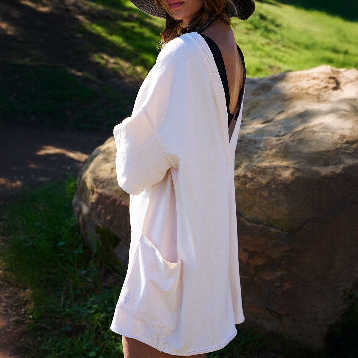 Перед выходом на площадку мы надеваем футболку-комбинезон FP Movement Hot Shot с принтом Coddy поверх нашего пикбола. Спущенный V-образный вырез на спине подчеркивает наш яркий спортивный бюстгальтер с бретельками, а накладные карманы придают простому переду особый шарм. Во время разминки перед подачей свободный крой и эластичная конструкция обеспечивают полную свободу движений плечам.