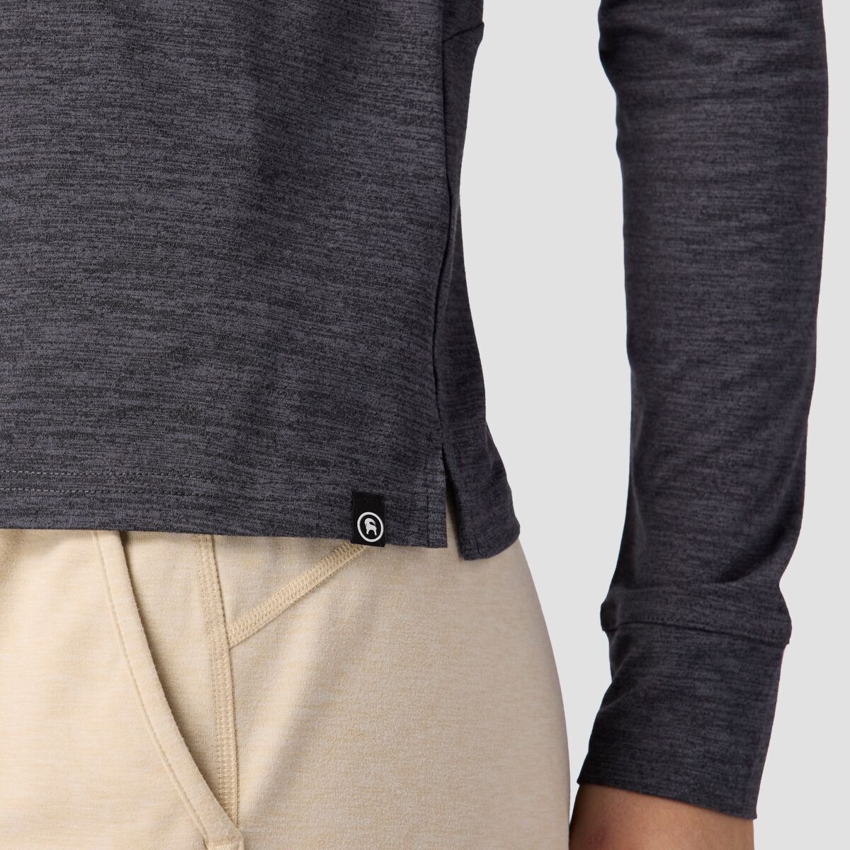 Материал: 92% полиэстер, 8% спандекс, персиковый трикотаж, влагоотводящая пропитка. Посадка: стандартная. Длина по центру спины: 24 дюйма. Модель: воротник-стойка с застежкой-молнией 1/4. Вшитый бюстгальтер: нет. Рейтинг UPF: 50+. Вид деятельности: пеший туризм, бег и тренировки, скалолазание.