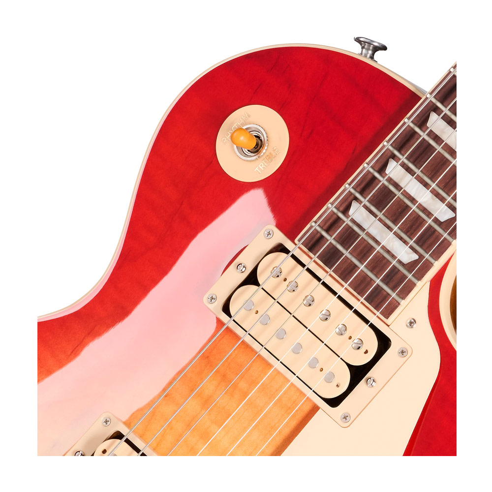 Эта гитара, изготовленная из цельного, не утяжеленного корпуса из красного дерева и фигурного топа из клена, обладает устойчивостью и богатством звучания, которыми славятся Les Pauls. Тонкий гриф из красного дерева и накладка из розового дерева с акриловыми трапециевидными вставками обеспечивают плавную и быструю игру на всех 22 ладах. Бридж ABR-1 Tune-O-Matic и алюминиевая накладка на хвостовике, а также тюнеры Grover Rotomatic обеспечивают точную стабильность настройки и интонацию даже во время продолжительных выступлений. Эти высококачественные материалы и компоненты делают эту гитару надежным выбором для студийной работы или живых выступлений.