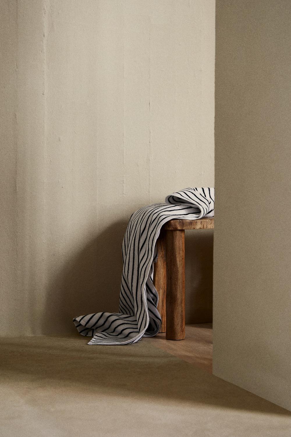 Это банное полотенце изготовлено из мягкой, хорошо впитывающей хлопковой махровой ткани. Благодаря полоскам, окрашенным в пряже, его можно легко сочетать с однотонными полотенцами, создавая современный и элегантный образ ванной комнаты. Полотенце также оснащено петлей для подвешивания. Плотность полотенца: 480 г/м².