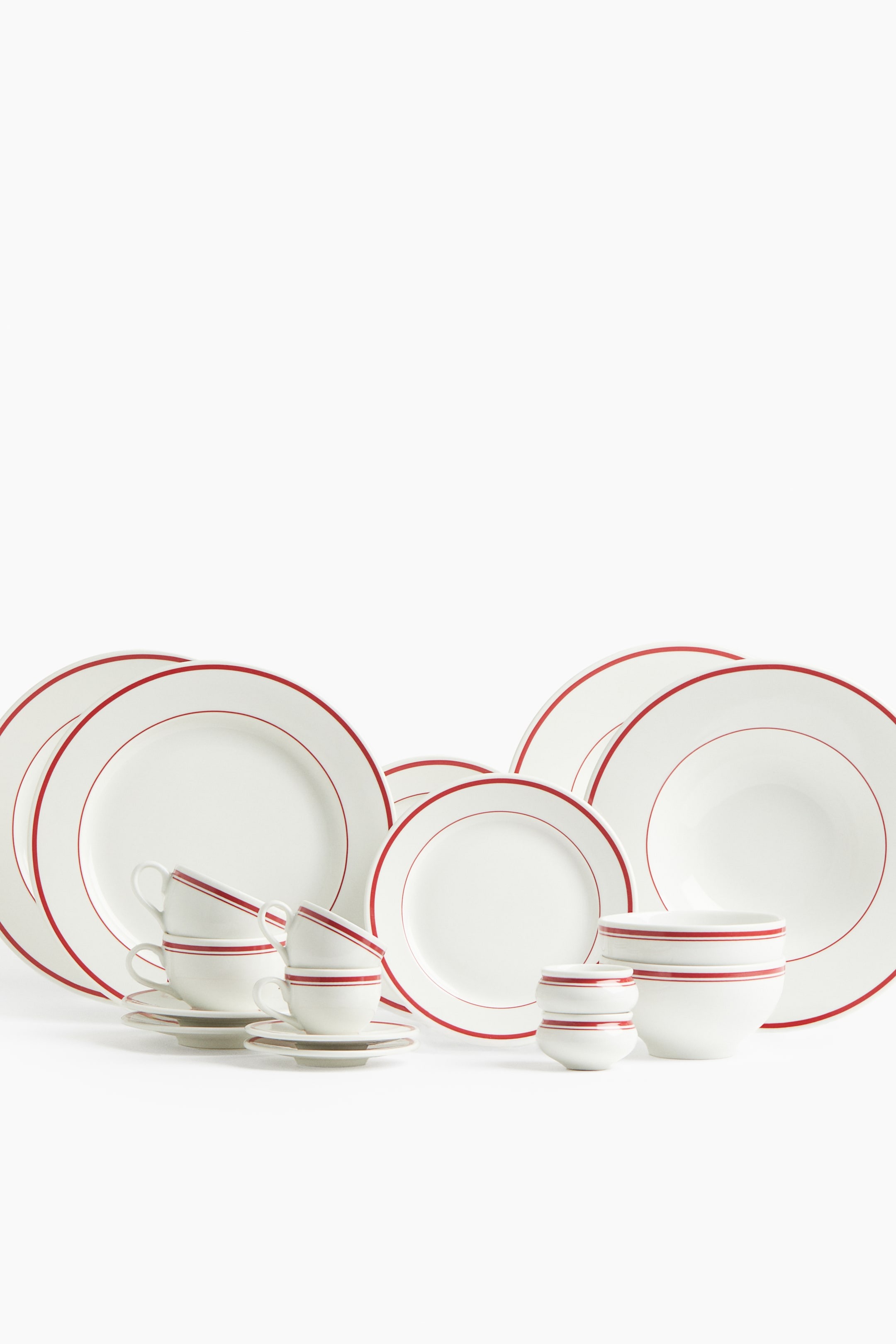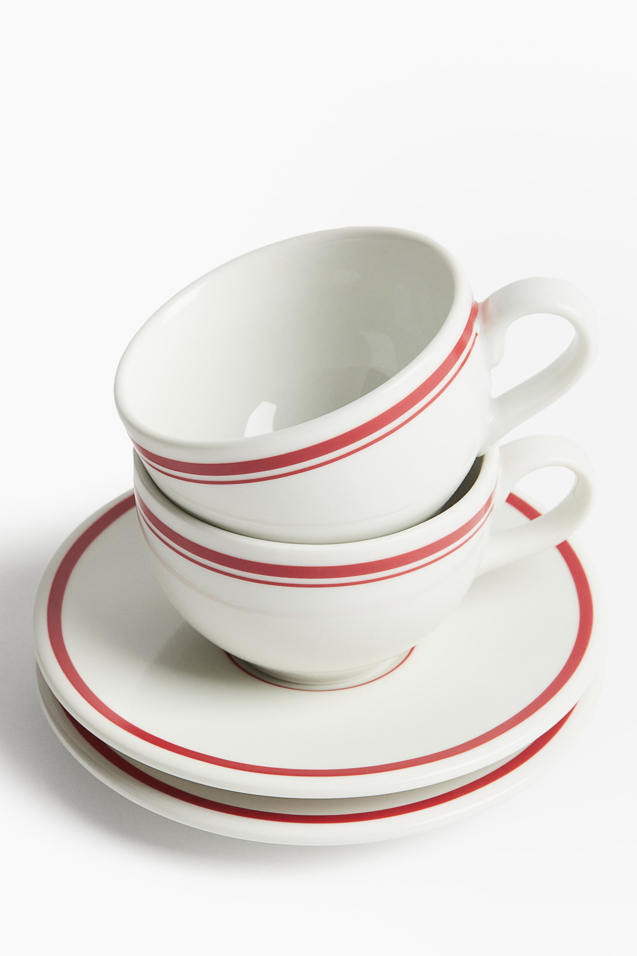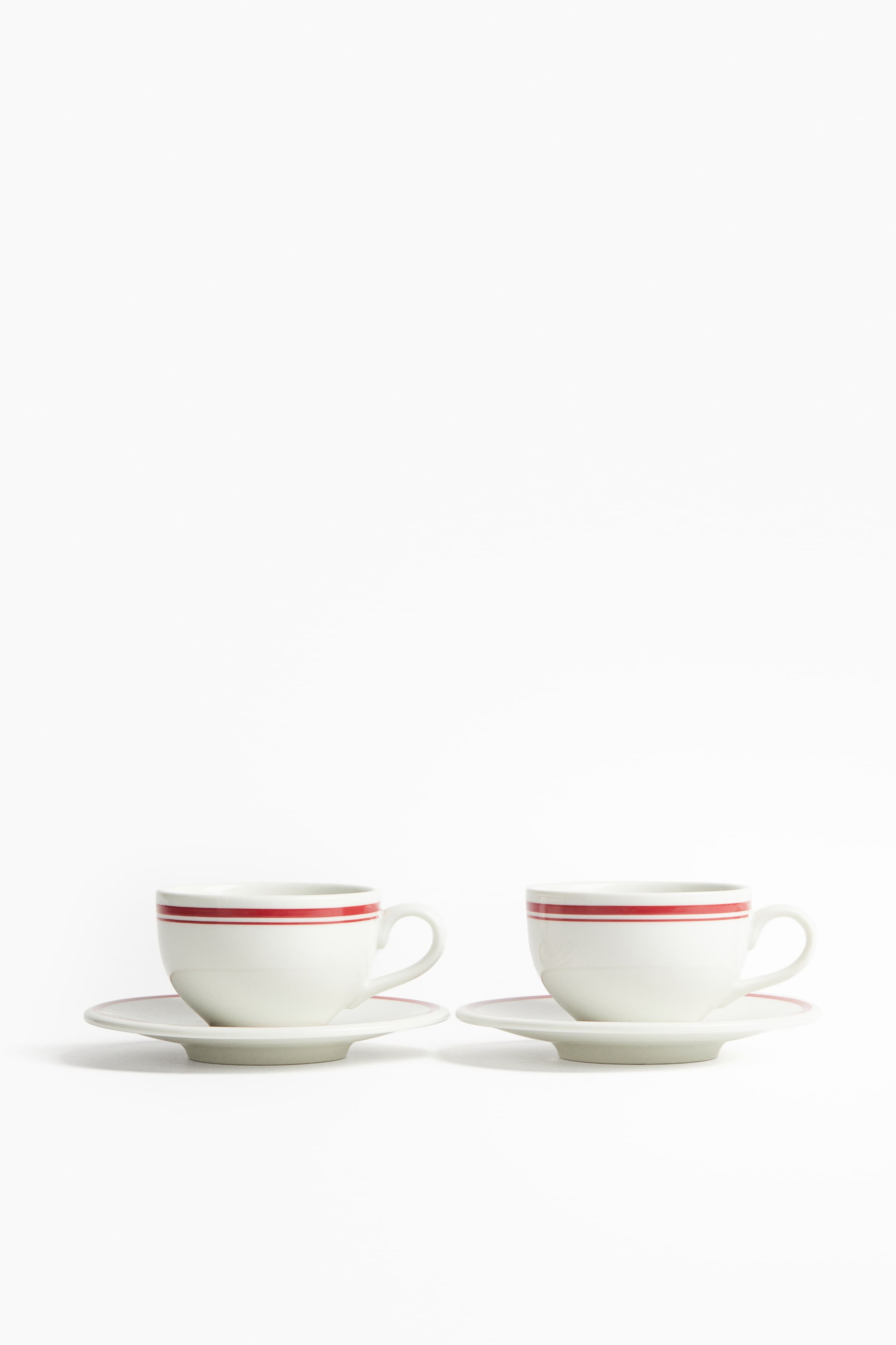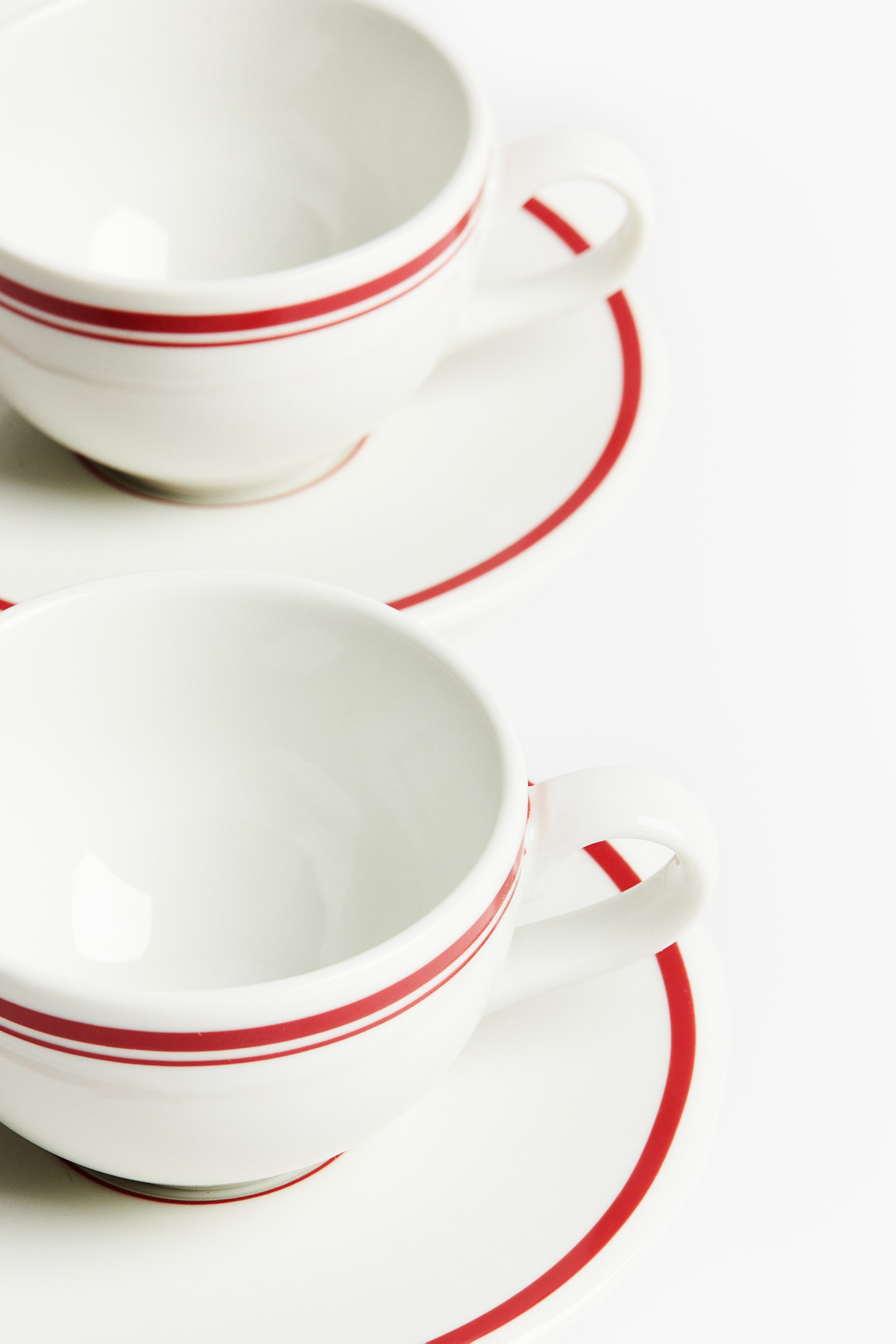 Две фарфоровые чашки для капучино с блюдцами, украшенные классическим расписным бортиком и вдохновлённые уютными французскими бистро.