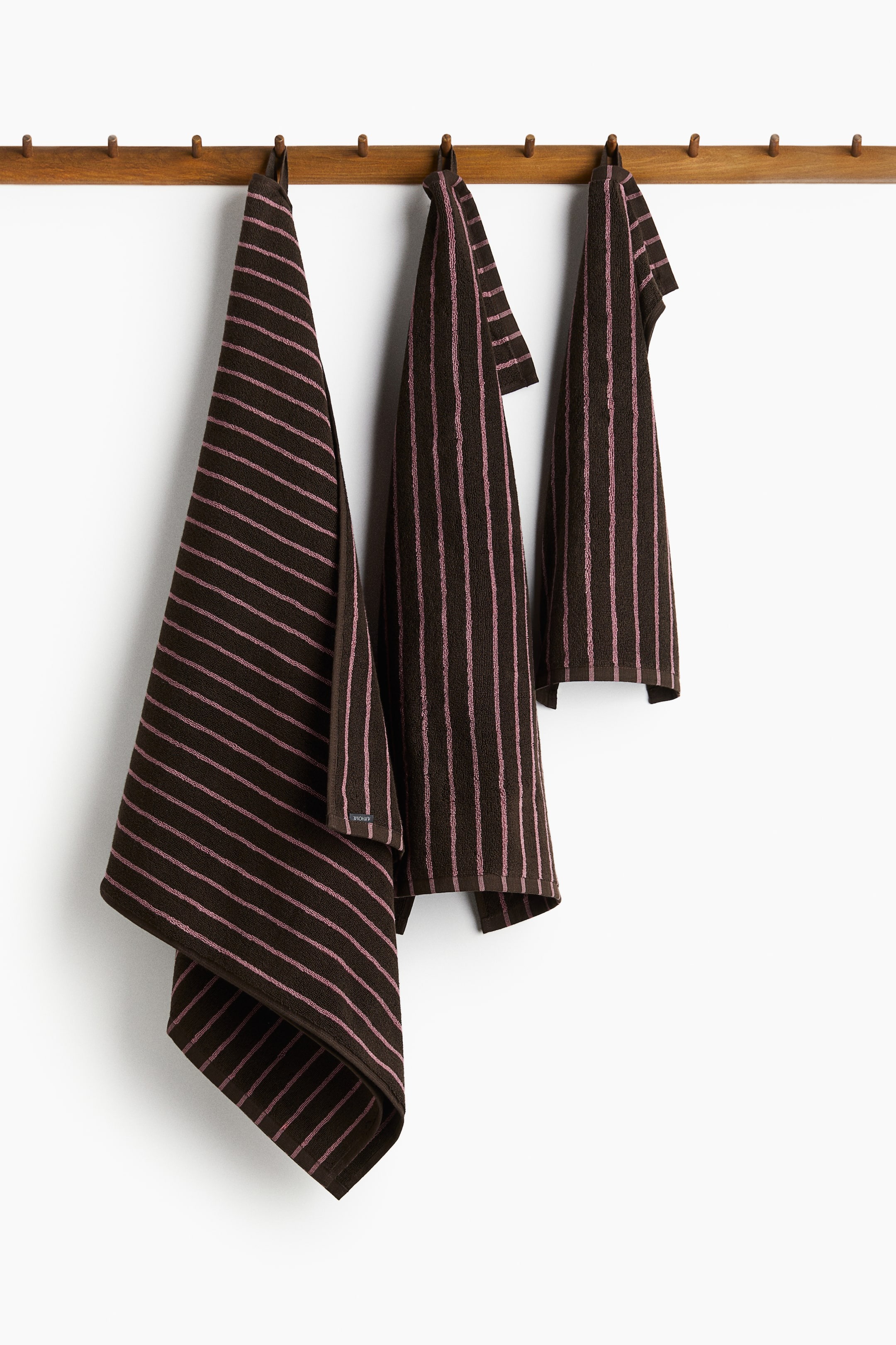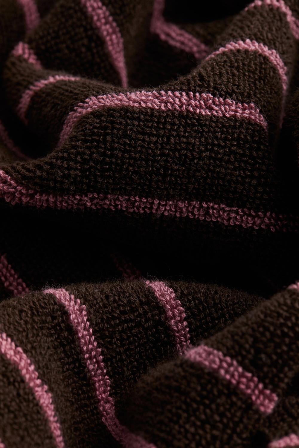 Это полотенце изготовлено из мягкой, хорошо впитывающей хлопковой махровой ткани. Благодаря окрашенным в пряжу полоскам его можно легко комбинировать с однотонными полотенцами, создавая современный и элегантный образ ванной комнаты. Полотенце также оснащено петлей для подвешивания. Плотность 480 г/м².