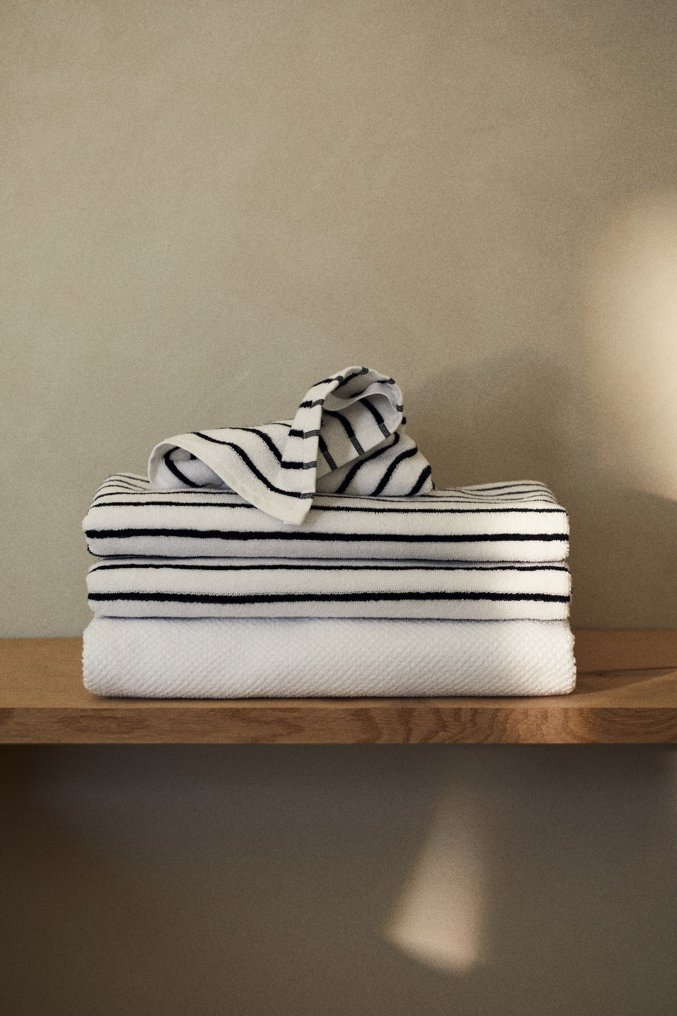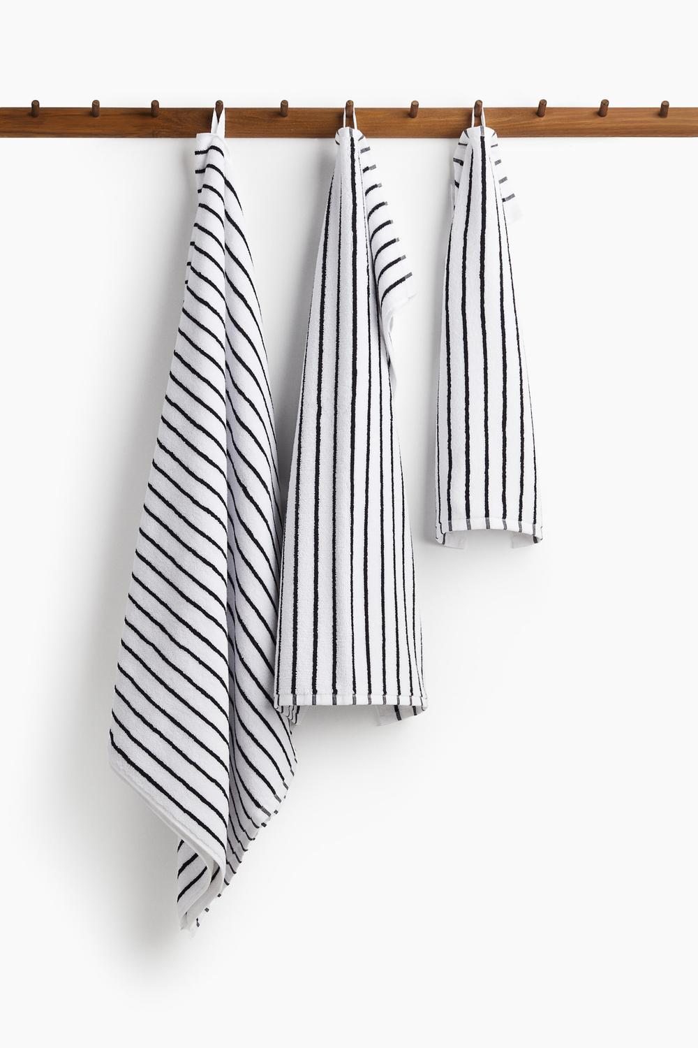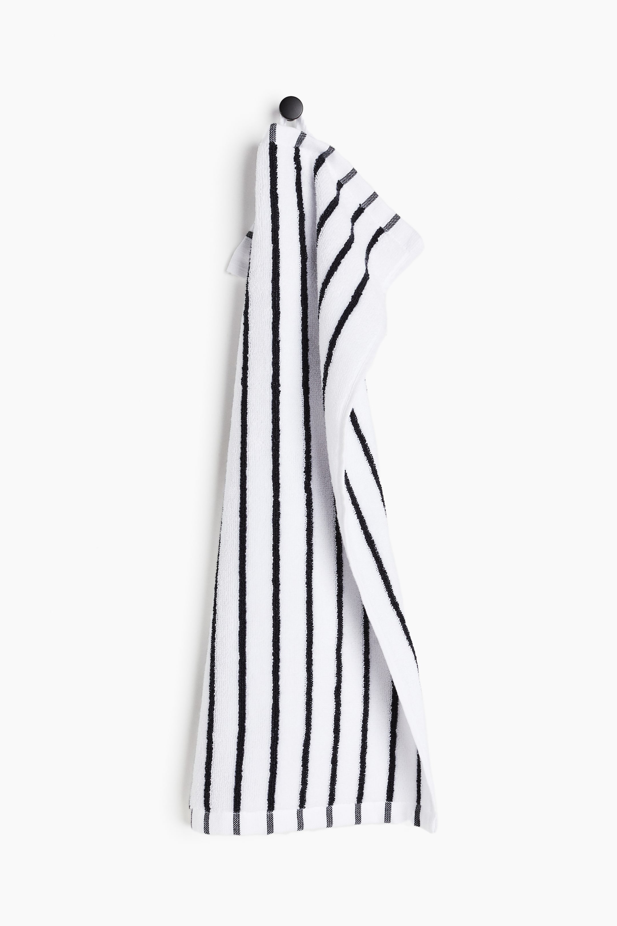 Это полотенце изготовлено из мягкой, хорошо впитывающей хлопковой махровой ткани. Благодаря окрашенным в пряжу полоскам его можно легко комбинировать с однотонными полотенцами, создавая современный и элегантный образ ванной комнаты. Полотенце также оснащено петлей для подвешивания. Плотность 480 г/м².