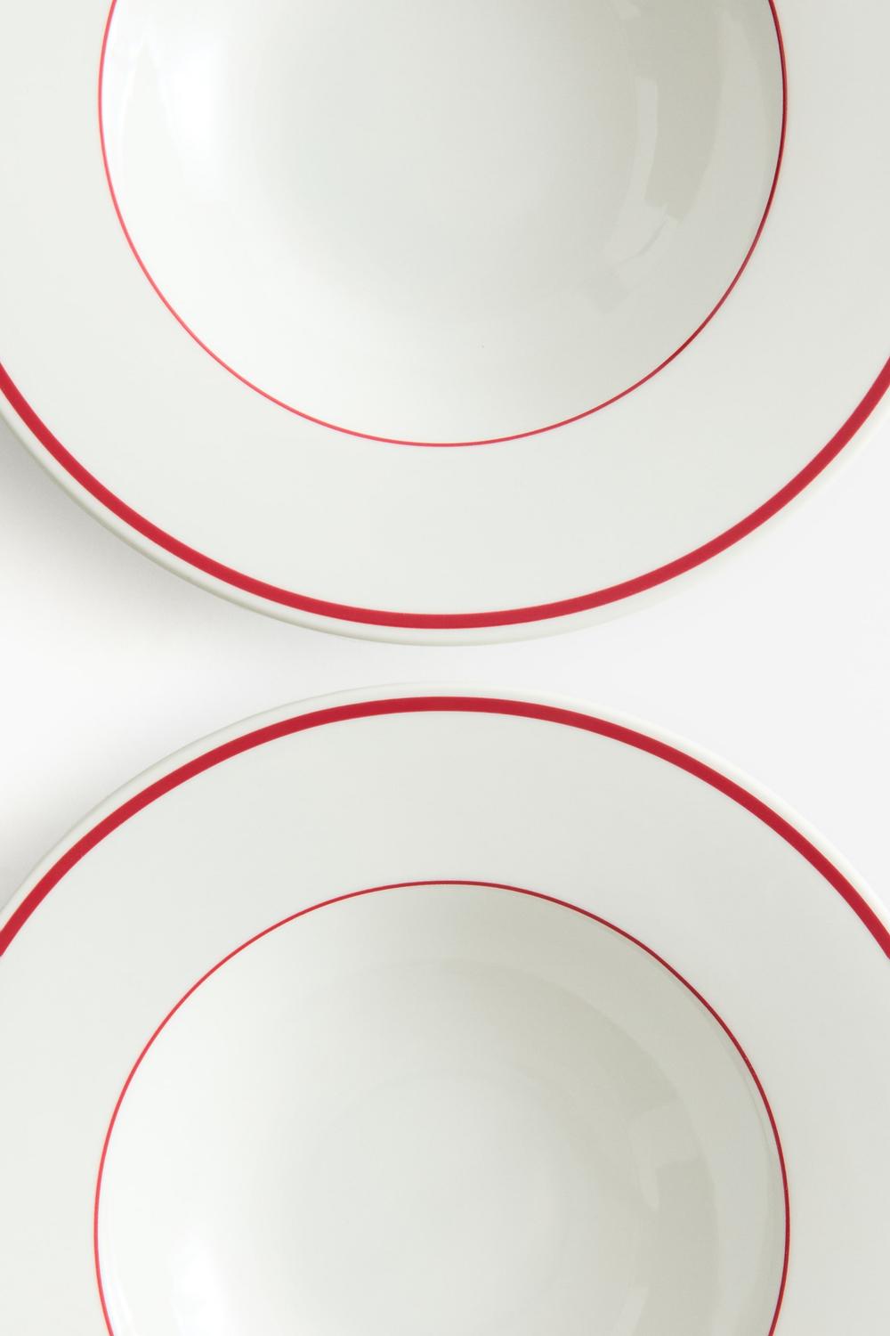 Две глубокие фарфоровые тарелки с классическим расписным бортиком, вдохновленные уютными французскими бистро.