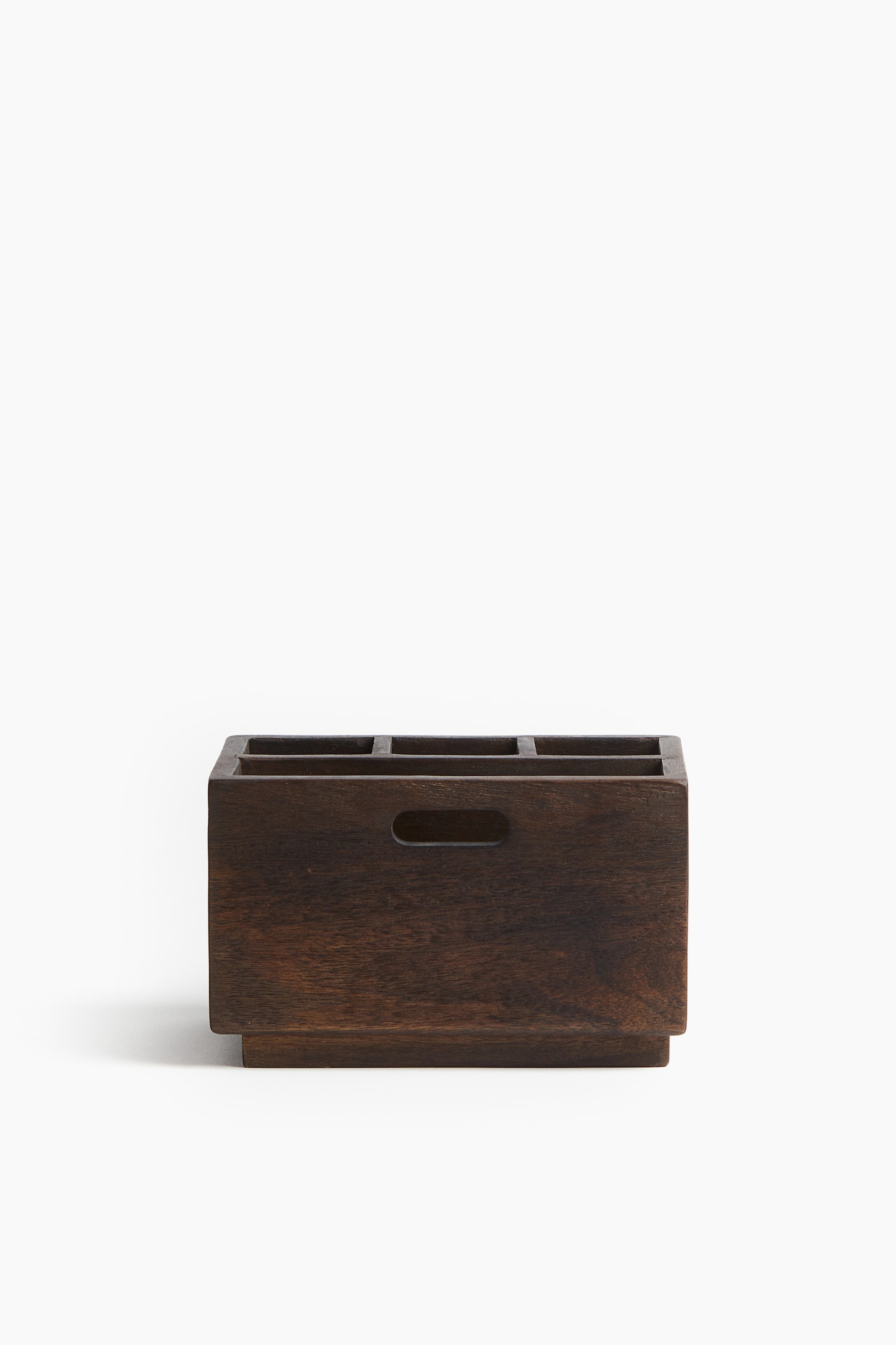 Держатель для столовых приборов из мангового дерева. Три маленьких отделения и одно большое.