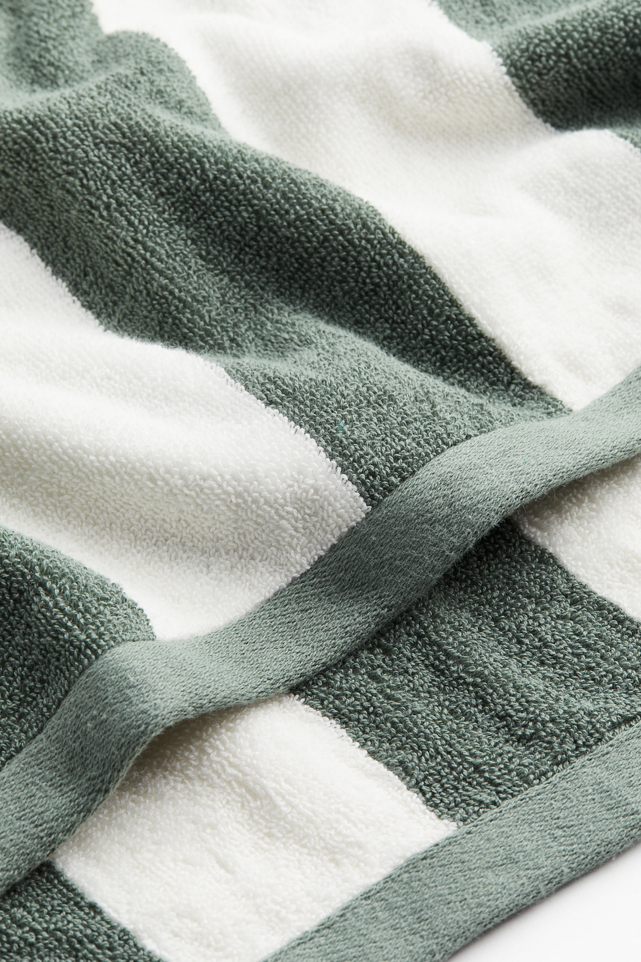 Полосатое банное полотенце из мягкой, хорошо впитывающей хлопковой махры. Благодаря плотному переплетению коротких сторон, это полотенце может стать частью вашего персонализированного набора полотенец. С одной длинной стороны оно имеет петельку. Плотность 480 г/м². В серии представлены полотенца разных размеров.