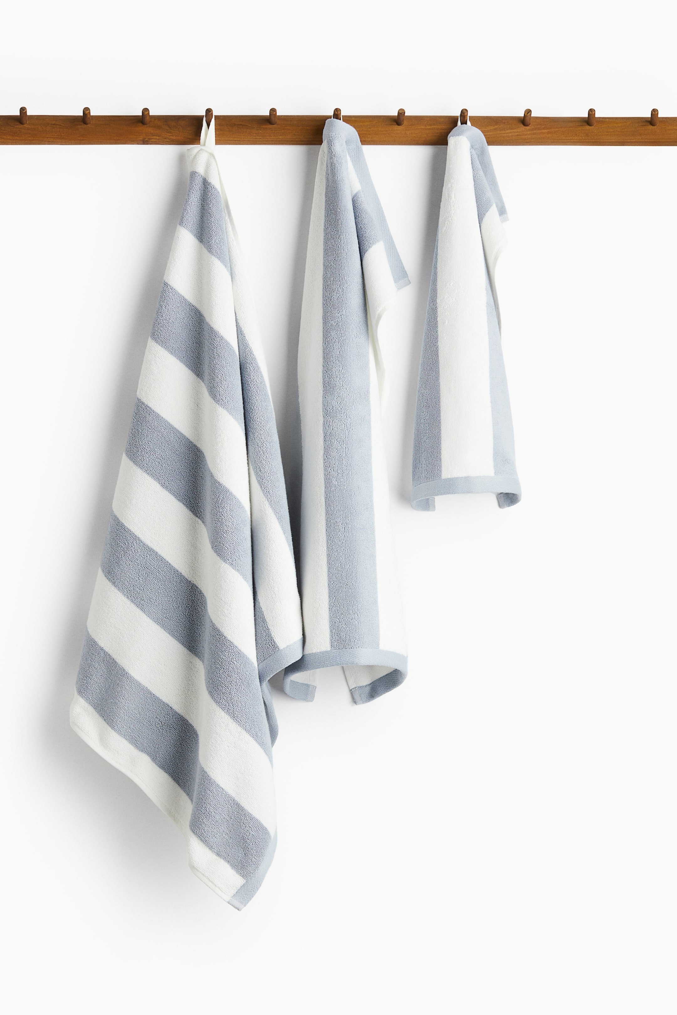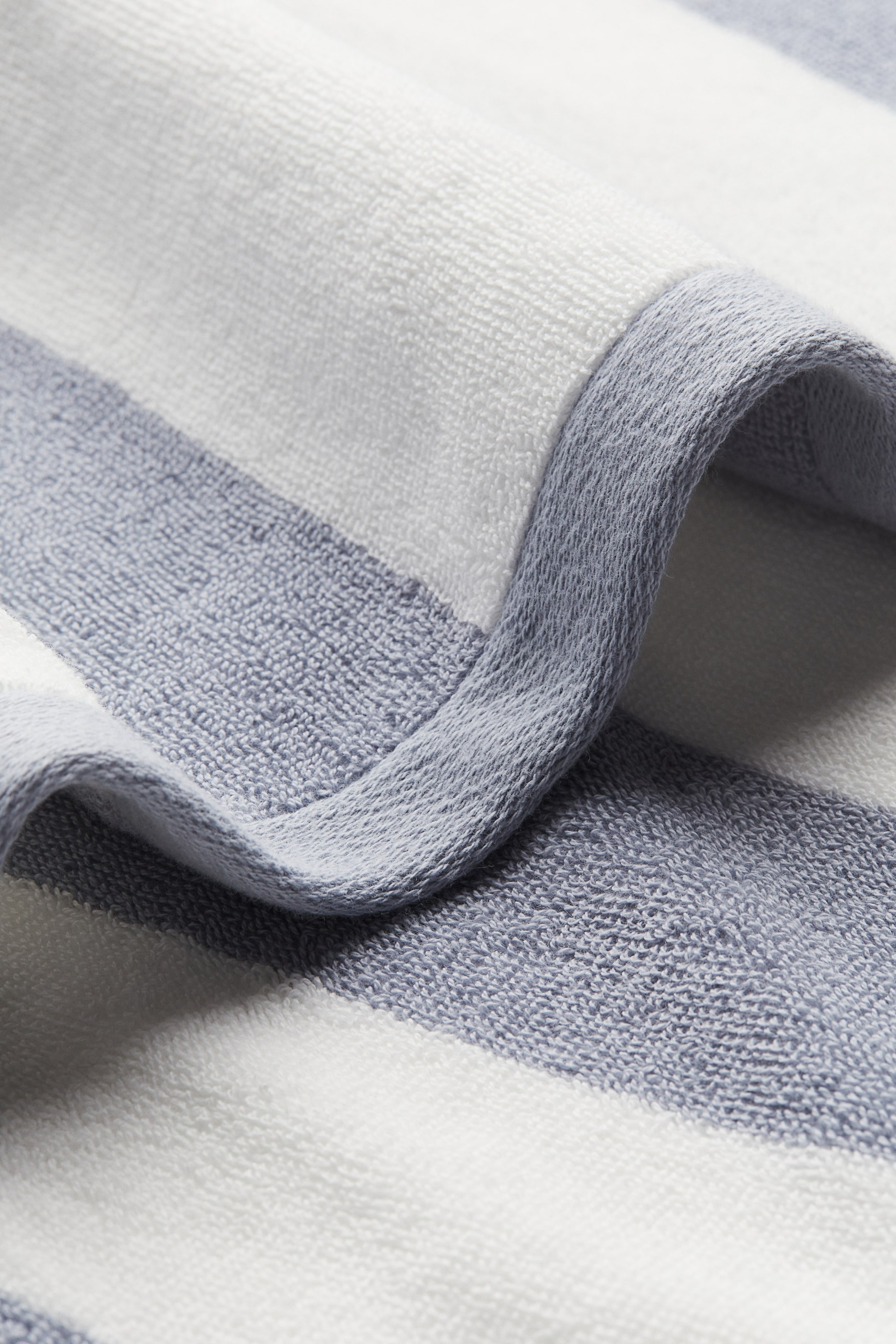 Полосатое банное полотенце из мягкой, хорошо впитывающей хлопковой махры. Благодаря плотному переплетению коротких сторон, это полотенце может стать частью вашего персонализированного набора полотенец. С одной длинной стороны оно имеет петельку. Плотность 480 г/м². В серии представлены полотенца разных размеров.