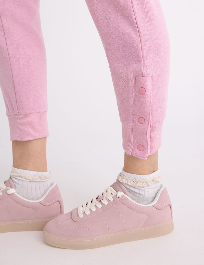 Эти спортивные брюки на кнопках сочетают в себе комфорт и стиль. Благодаря кулиске на талии, зауженным брючинам и ребристым манжетам, они обеспечивают свободную посадку и элегантный вид. Боковые кнопки на щиколотке добавляют функциональности и идеально подходят для создания универсального образа в дороге. Дополнены незаметными карманами и изящным логотипом. На модели размер S.