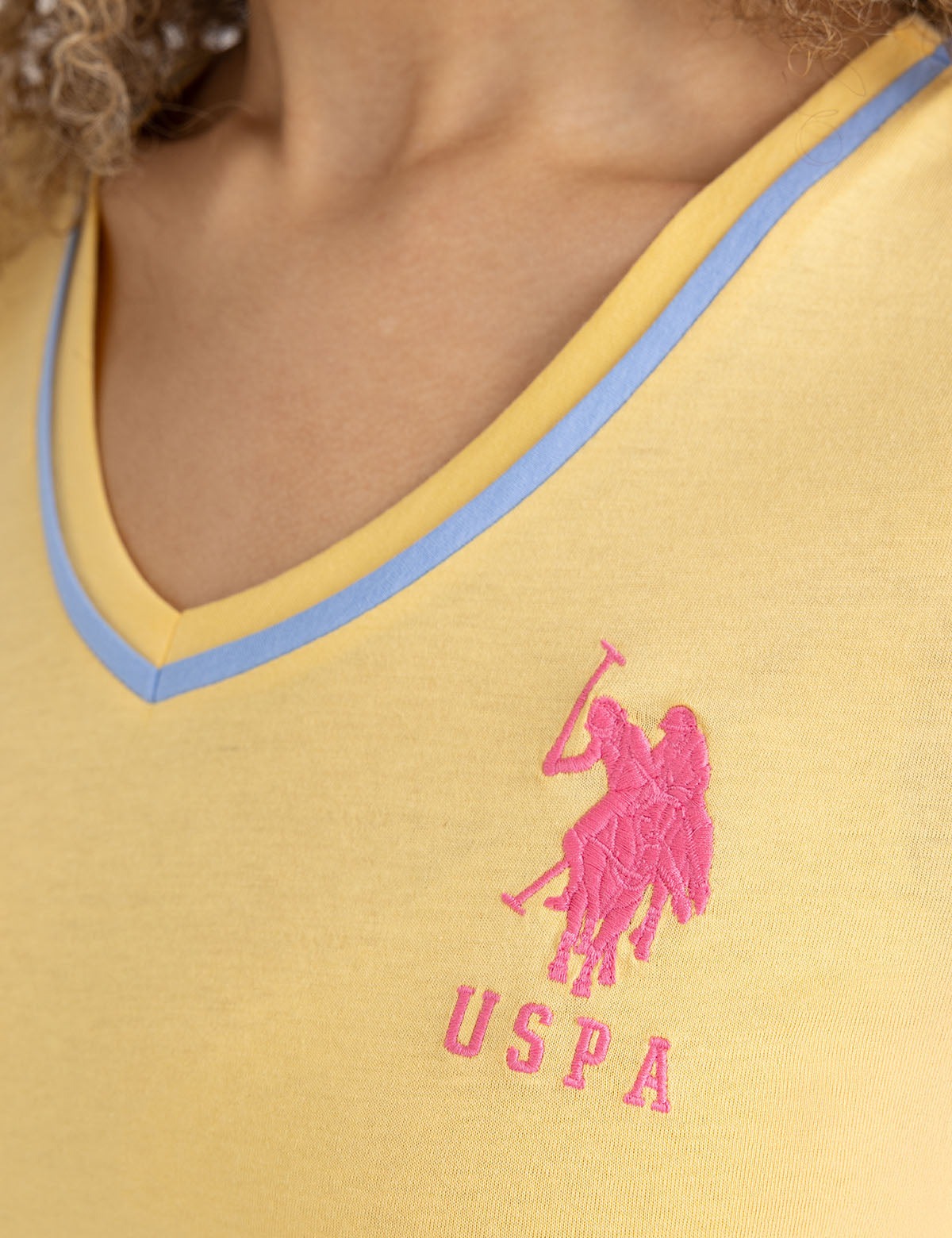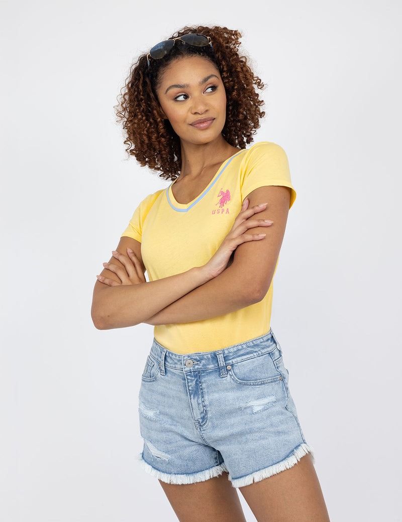 Футболка с V-образным вырезом и тройной короной.