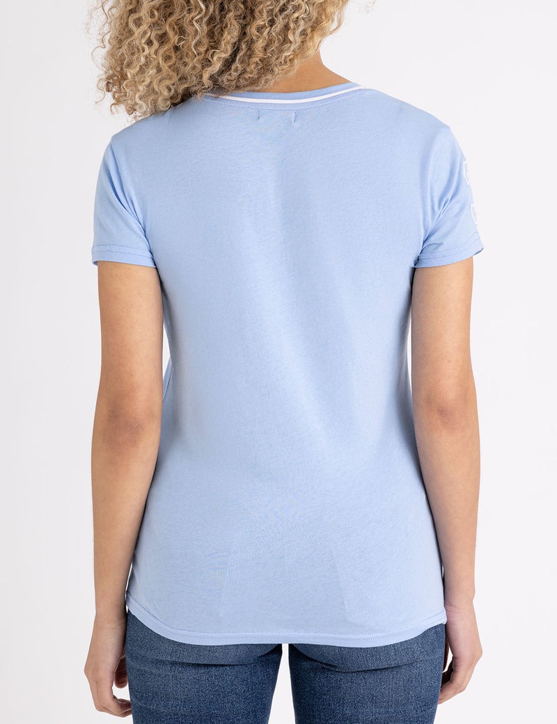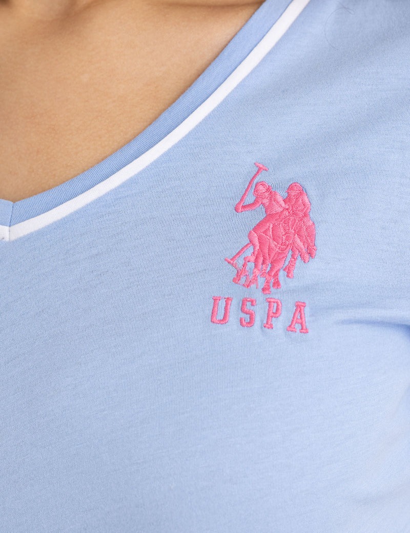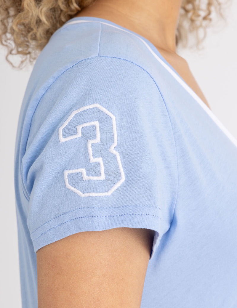 Футболка с V-образным вырезом и тройной короной.