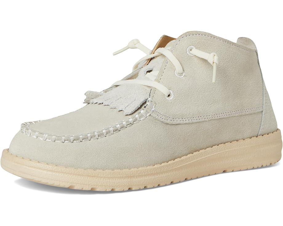 • Выразите себя с комфортом и уверенностью в кроссовках Hey Dude Wendy Mid Elevated. Эти великолепные туфли из высококачественной замши отличаются стильным воротником средней высоты и игривым килти с бахромой спереди. Вышитая строчка добавляет нотку элегантности, делая их идеальными для того, чтобы вывести свой образ на новый уровень. Эти туфли на шнуровке имеют конструкцию Flex & Fold, которая поддерживает здоровье стопы благодаря уникальной форме, обеспечивая полную свободу движений. Шнурки изготовлены из эластичного материала, который позволяет им гнуться вместе со стопой, обеспечивая более равномерную посадку. Съёмная стелька из ЭВА и хлопковая подкладка. Выведите свой стиль на новый уровень с этими кроссовками.