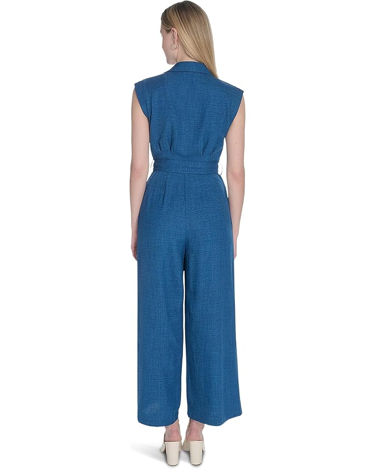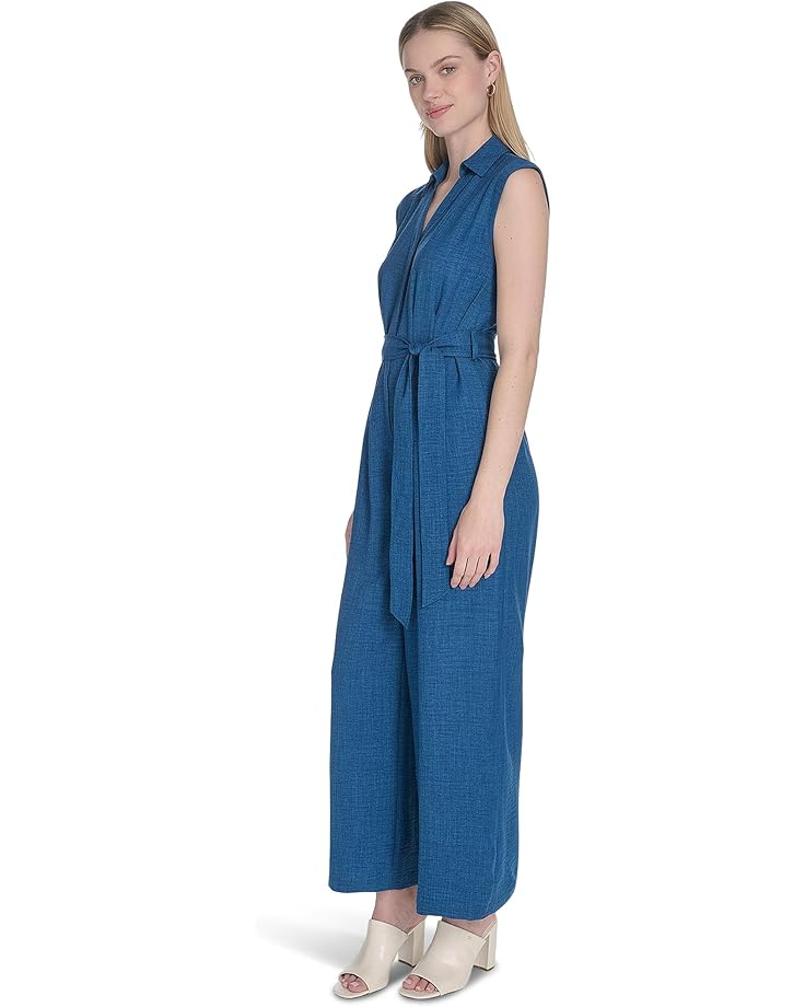 • Создавайте непринужденный и элегантный образ и днем, и вечером в комбинезоне Calvin Klein Aerowash с короткими рукавами и поясом. Вырез горловины, короткие рукава, пояс на талии со шлевками и свободные штанины.