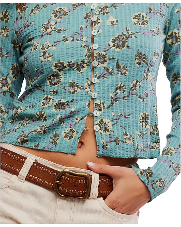 Лонгслив Free People Tilly Long, цвет Mineral Blue Combo