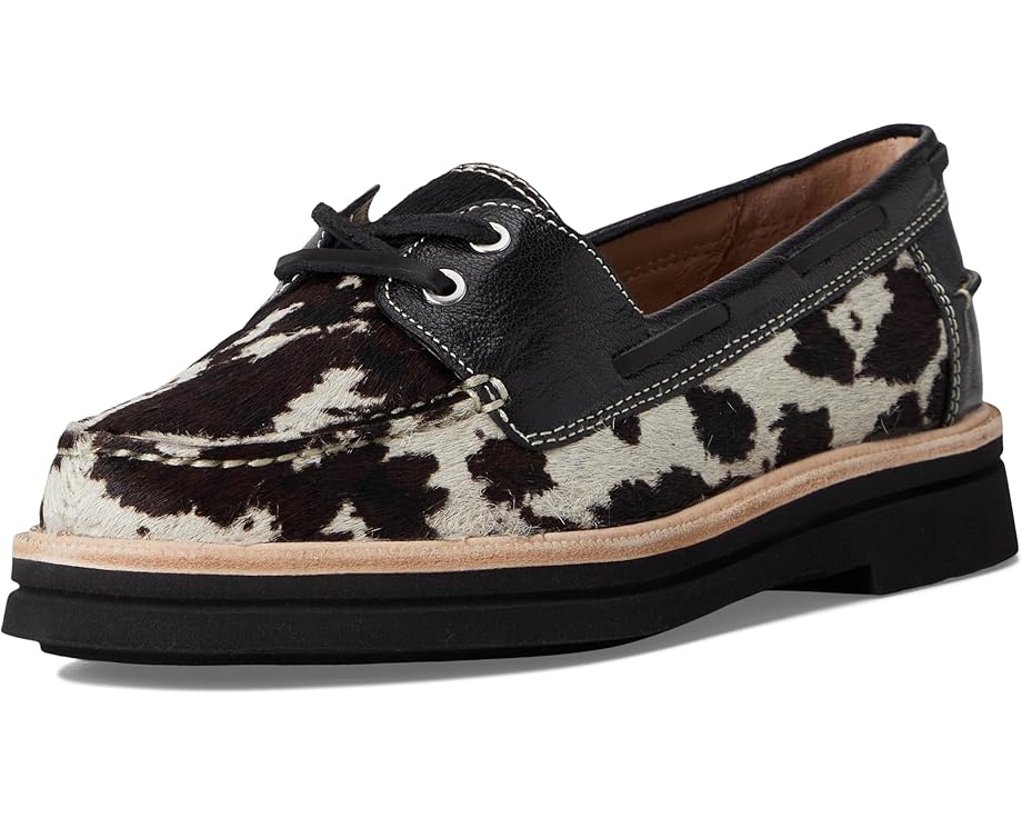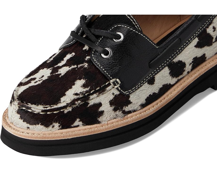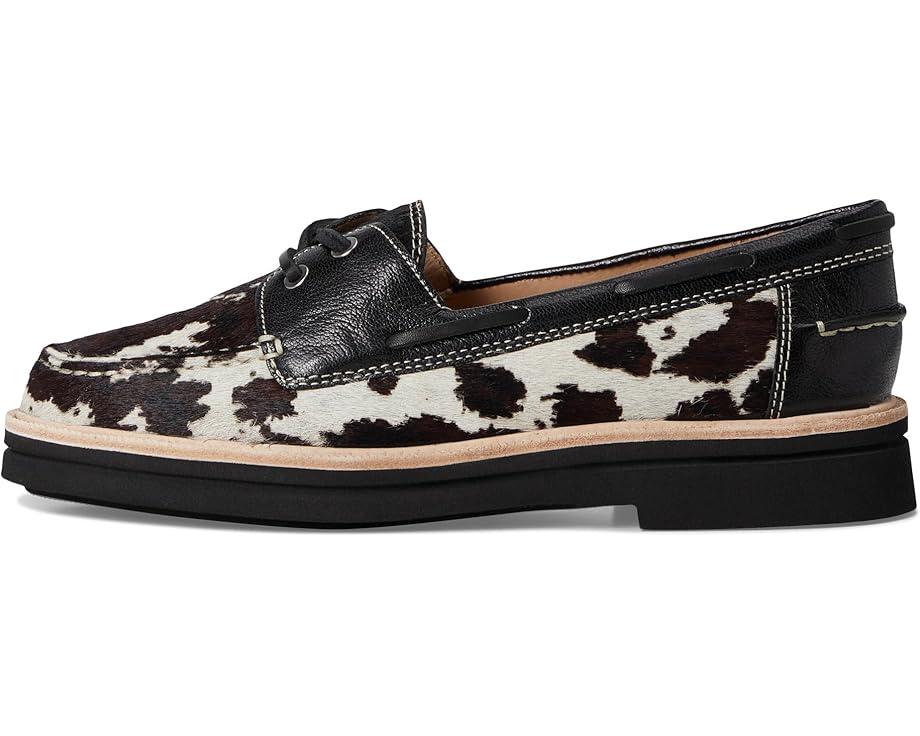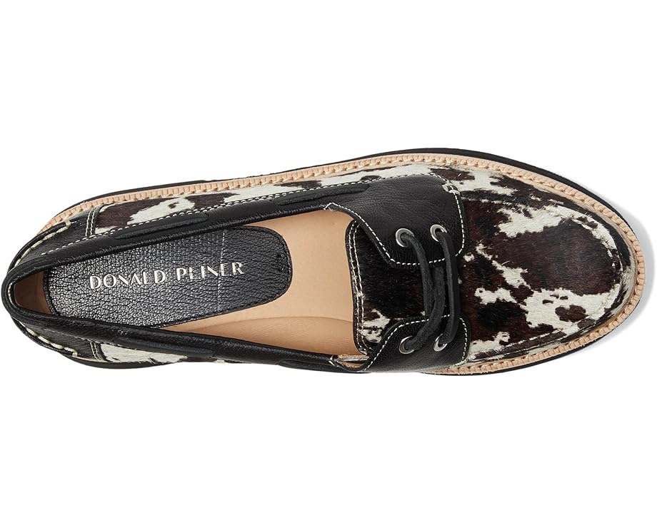• Выразите себя в этих эффектных лоферах Donald Pliner Lilith с коровьим принтом. Верх выполнен из роскошной телячьей кожи, что создаёт фактурный, эффектный образ. Классический силуэт лодочек дополнен элегантной чёрной кожаной отделкой и современной контрастной подошвой из ЭВА для стильного и современного образа. Бант на шнуровке добавляет вневременной штрих, делая эти мокасины идеальными как для повседневного, так и для изысканного образа.