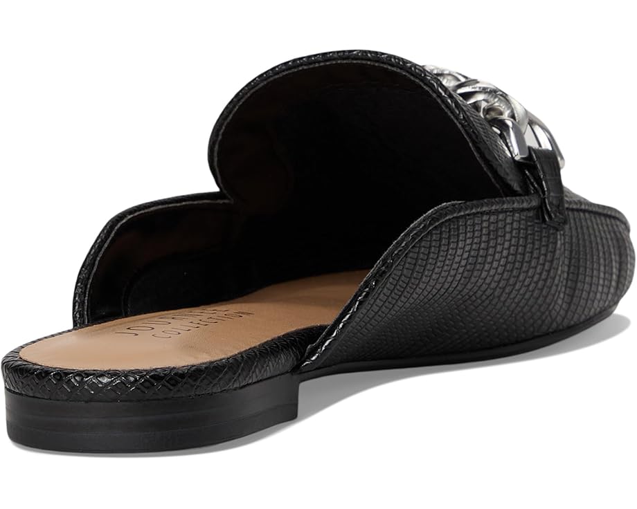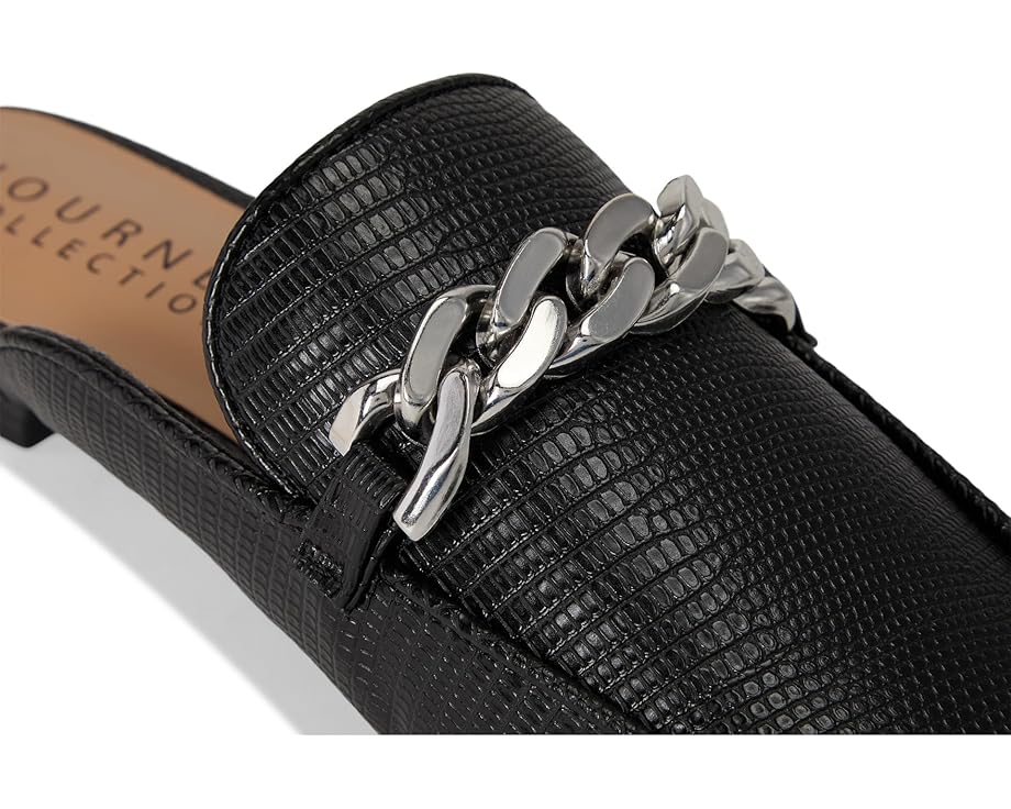 • Универсальные мюли Hazina от Journee Collection, которые подойдут для ваших образов с понедельника по воскресенье. Эти мюли с квадратным носком украшены серебристой цепочкой и имеют зазубренный верх. Верх из веганской кожи с текстурой под ящерицу формирует силуэт, а стелька высотой 4 фута делает их невероятно удобными. В Journee вы будете выглядеть так же профессионально, как ваш начальник на работе, и в стильной обуви, когда выйдете в свет.