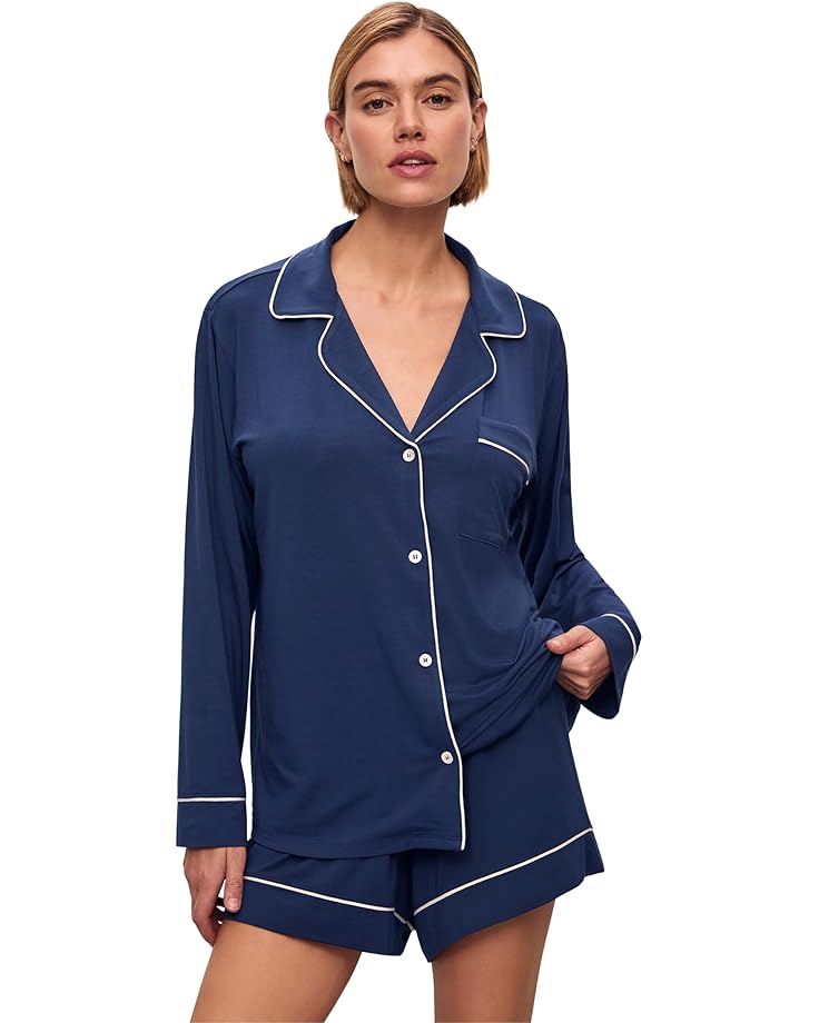 • Почувствуйте себя прекрасно и насладитесь роскошным комфортом в пижамном комплекте Eberjey Gisele с длинными рукавами и шортами. Изготовленный из терморегулирующего трикотажа, свободный крой с длинными рукавами обеспечивает дополнительную защиту сверху, а открытые шорты для сна обеспечат прохладу на протяжении всей ночи. Верх с воротником, накладным карманом на левой груди, застежкой на пуговицы по всей длине и контрастной окантовкой. В комплекте шорты с эластичным поясом, манжетами по низу и контрастной окантовкой.