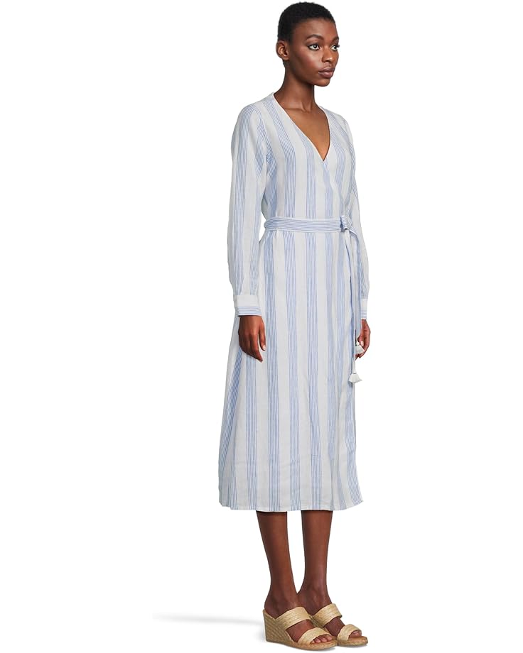 • Сделайте выходные более стильными и приятными в платье-халате Tommy Bahama Bayside Isle. Платье легко надевается, имеет V-образный вырез, длинные рукава с манжетами-бочонками, регулируемый пояс на талии и силуэт с запахом. Платье дополнено классическим полосатым принтом по всей поверхности, двумя прорезными карманами для дополнительной функциональности и элегантным силуэтом ниже колена.