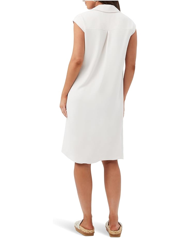 • Платье Trina Turk Meron с V-образным вырезом и воротником добавляет элегантности, а рукава-крылышки подчеркивают структурированный, но при этом свободный образ. Накладные карманы на груди – функциональная и стильная деталь, делающая его универсальным.