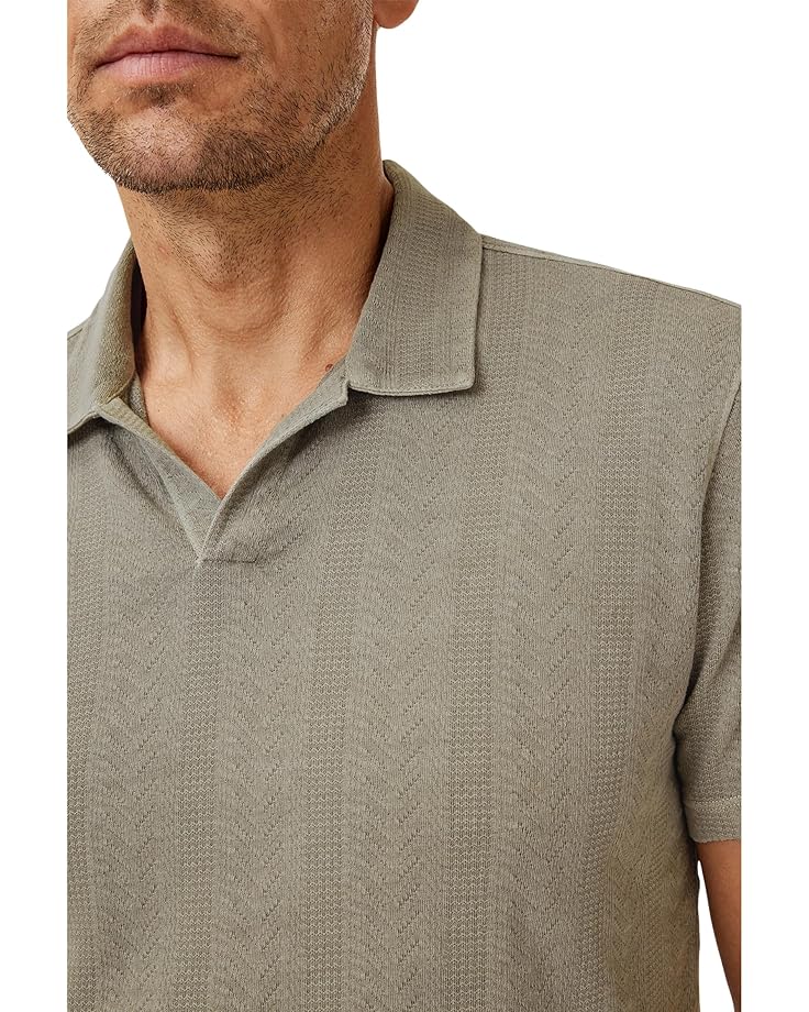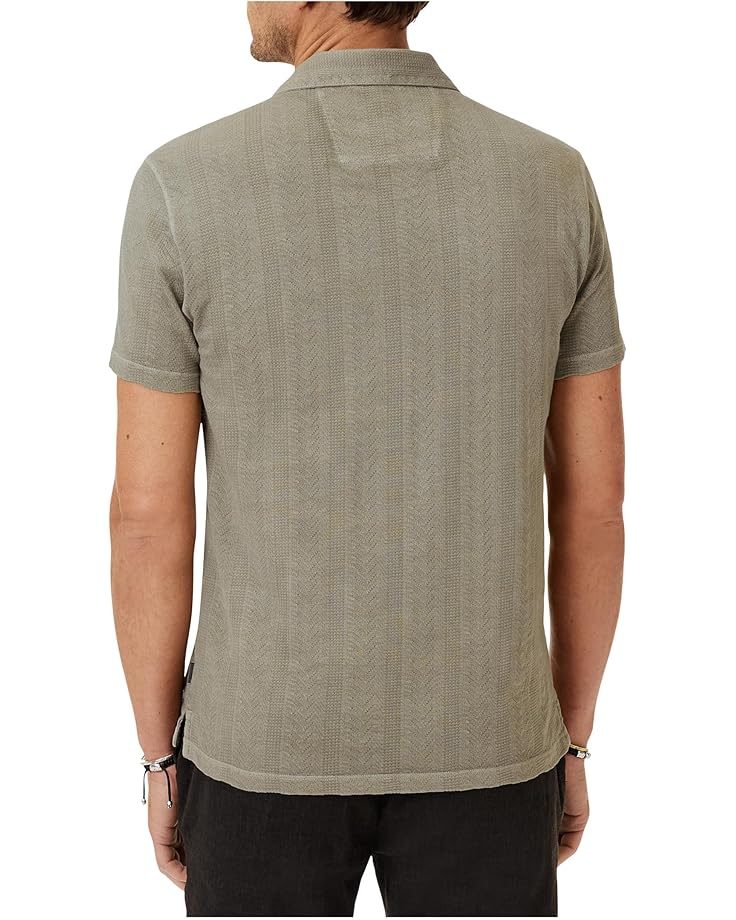 • Рубашка поло John Varvatos Zion, выполненная в непринужденном стиле, сочетает в себе непринужденный стиль и сдержанную изысканность. Эта рубашка поло свободного кроя из фактурного органического хлопка имеет воротник-стойку, короткие рукава и боковые разрезы.