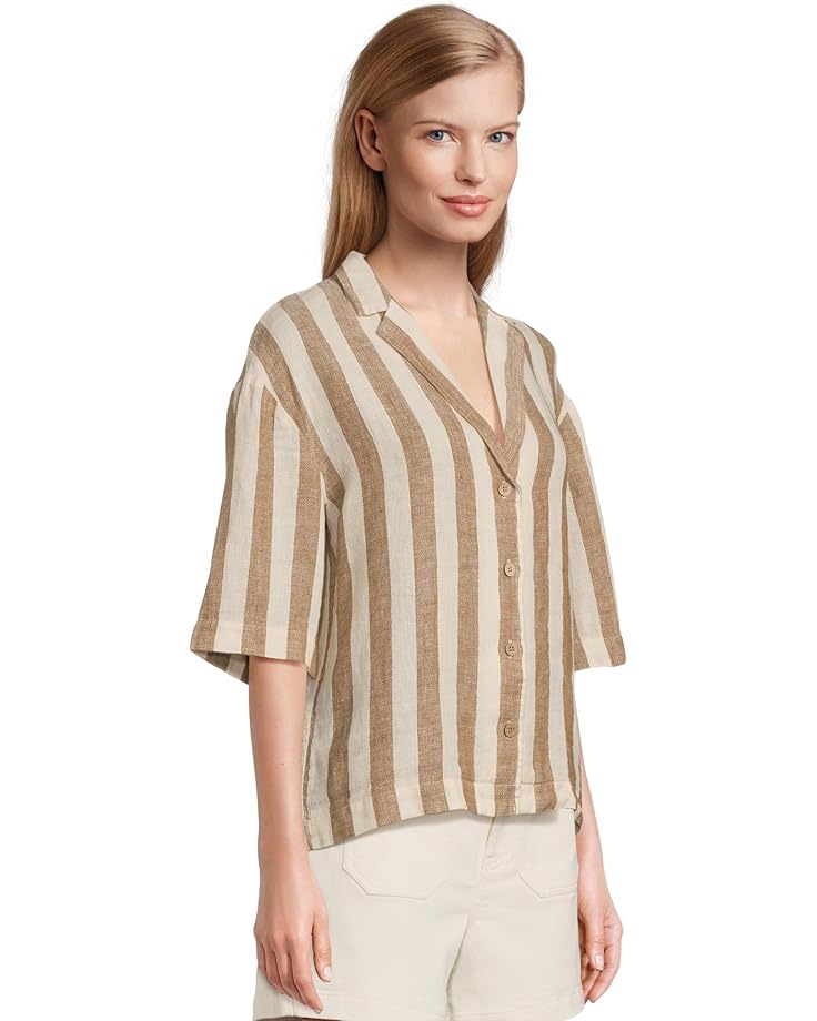 Рубашка Faherty Palma Linen Camp Shirt, цвет Cocoa Beach Stripe