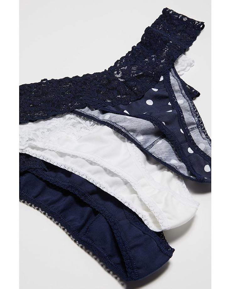 Стринги Hanky Panky Cotton Original Rise Thong 3-pack, цвет Navy/Full Circle/White