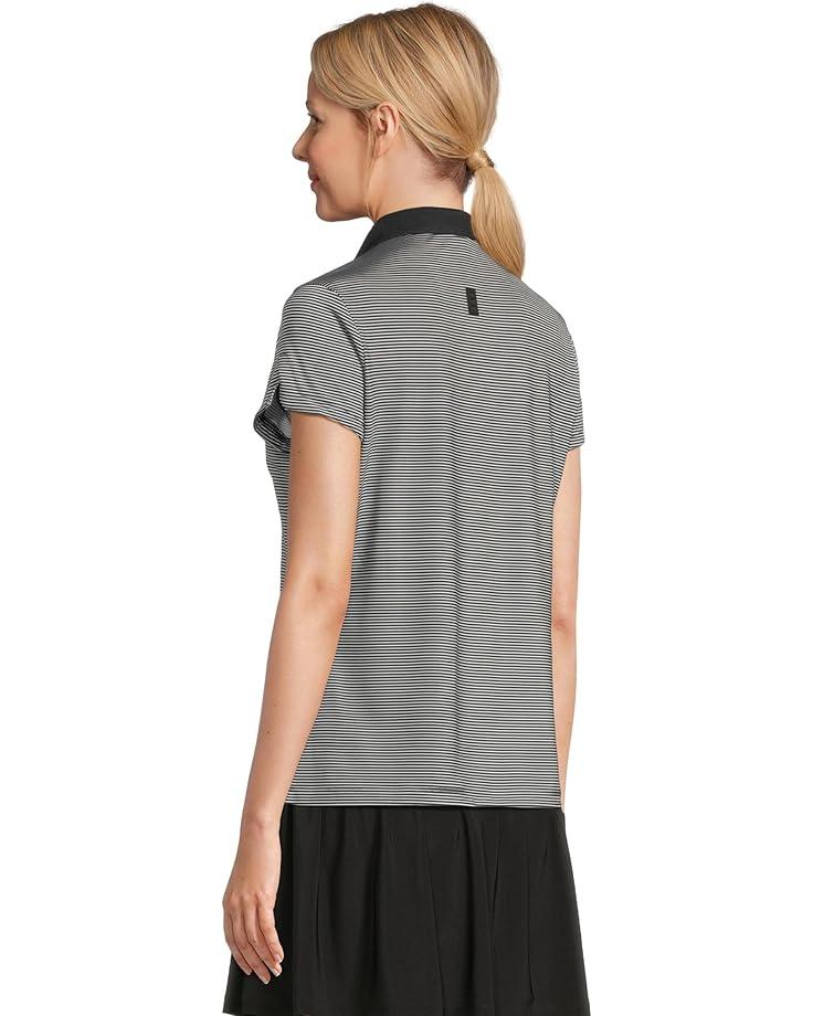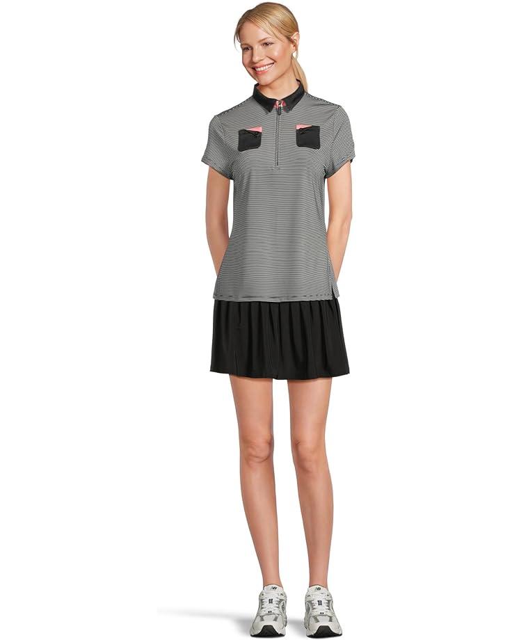 • Полосатый топ Jamie Sadock с короткими рукавами, изготовленный из лёгкой и дышащей ткани Cooltrex с добавлением эластичности, добавит комфорта вашему повседневному образу жизни. Этот топ легко надевается, имеет традиционный воротник-поло, короткие рукава, потайную застёжку-молнию, полосатый принт по всей поверхности и прямой подол.