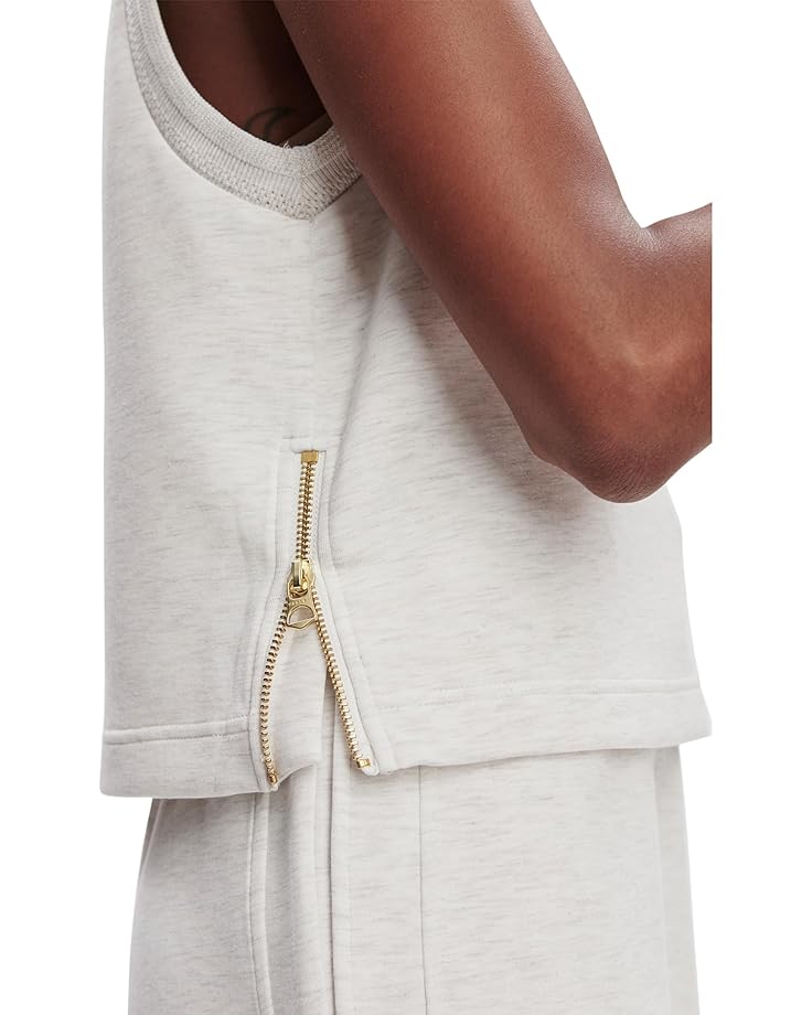 • Укороченная майка Shea без рукавов, подходящая для лета, выполнена из ткани DoubleSoft, обеспечивающей максимальный комфорт и элегантный вид. Модель имеет классический круглый вырез горловины, изысканную ажурную вязку на горловине и проймах, а также открытые молнии по бокам. Сочетайте с подходящими шортами DoubleSoft для создания гармоничного образа.