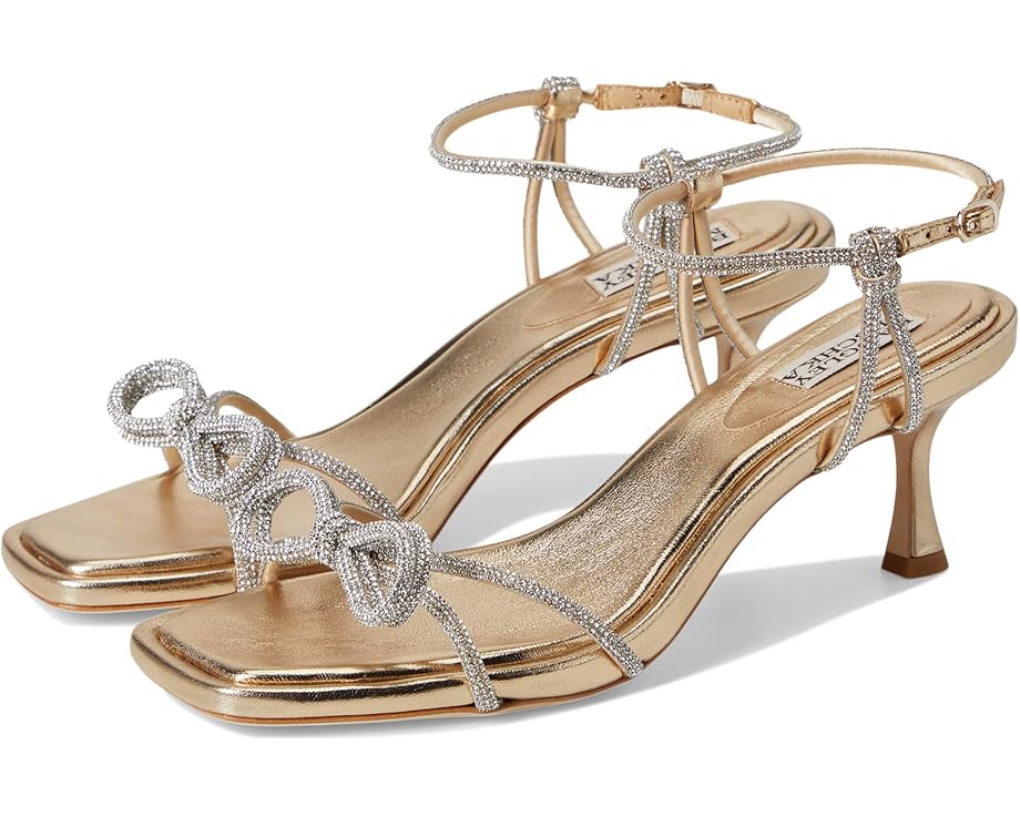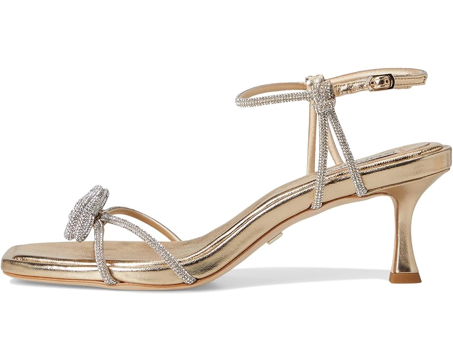 • Badgley Mischka Dandelion – воплощение гламура на каждом шагу. Эта пара с квадратным носком выполнена из шёлка, украшена стразами и имеет регулируемый ремешок на пряжке.