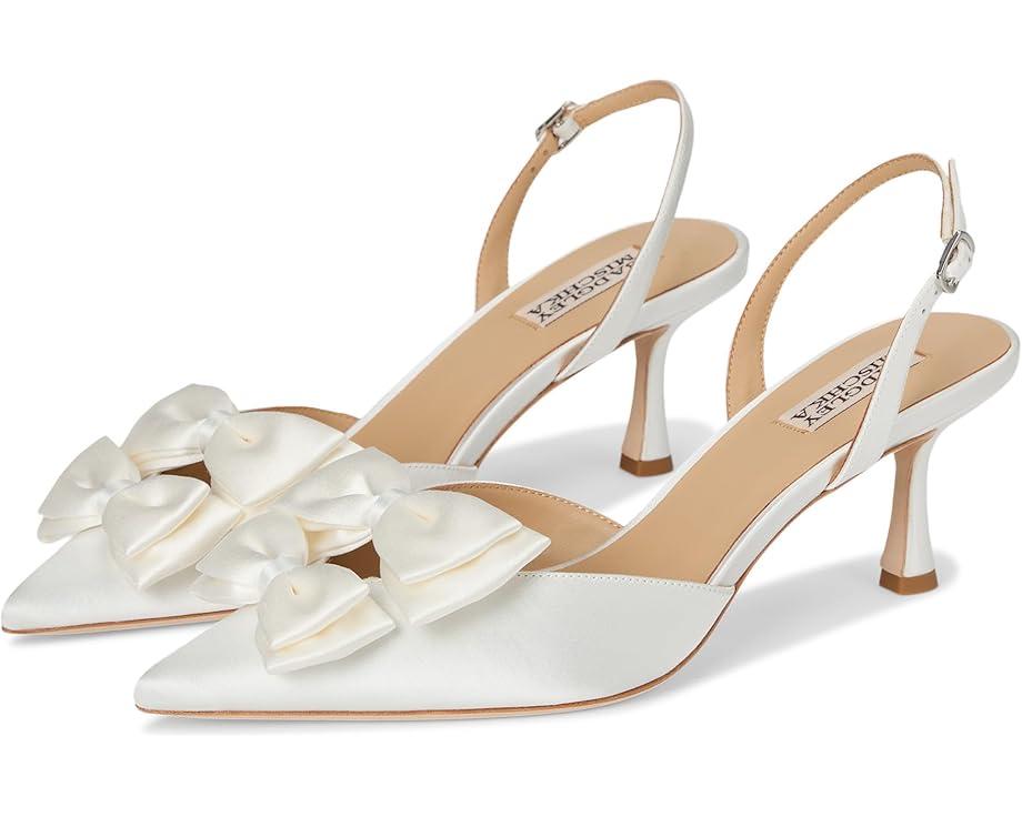 • Создайте яркий образ на следующем торжественном мероприятии в туфлях Badgley Mischka Giovanna Heels. Эти туфли на шпильке с шёлковым верхом, острым носком и двойным бантом придают образу изысканности. Регулируемый ремешок с пряжкой обеспечивает надёжную посадку. Дышащая кожаная подкладка и кожаная стелька обеспечивают комфорт.